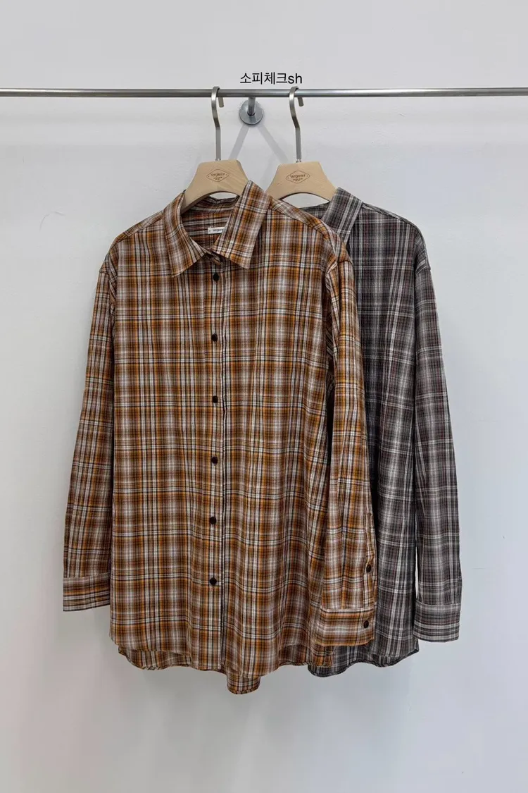 AA037文青格紋休閒感襯衫