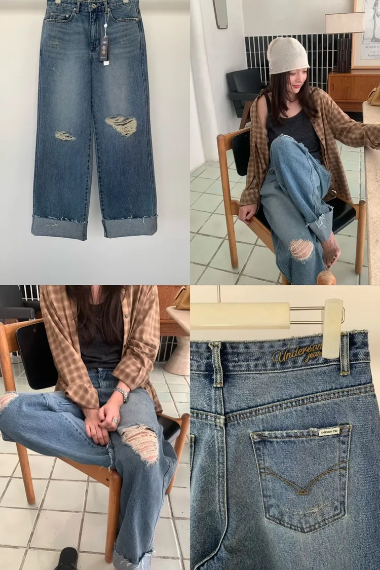 AA062刷破反折牛仔褲