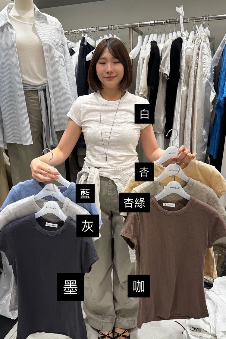 AA126-WOODSAGE竹節棉感清涼腰身短袖