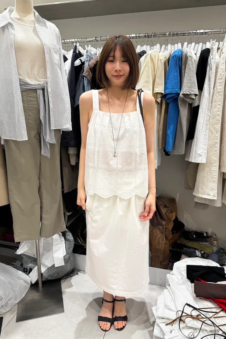 AA138-WOODSAGE平領寬肩帶花紋背心