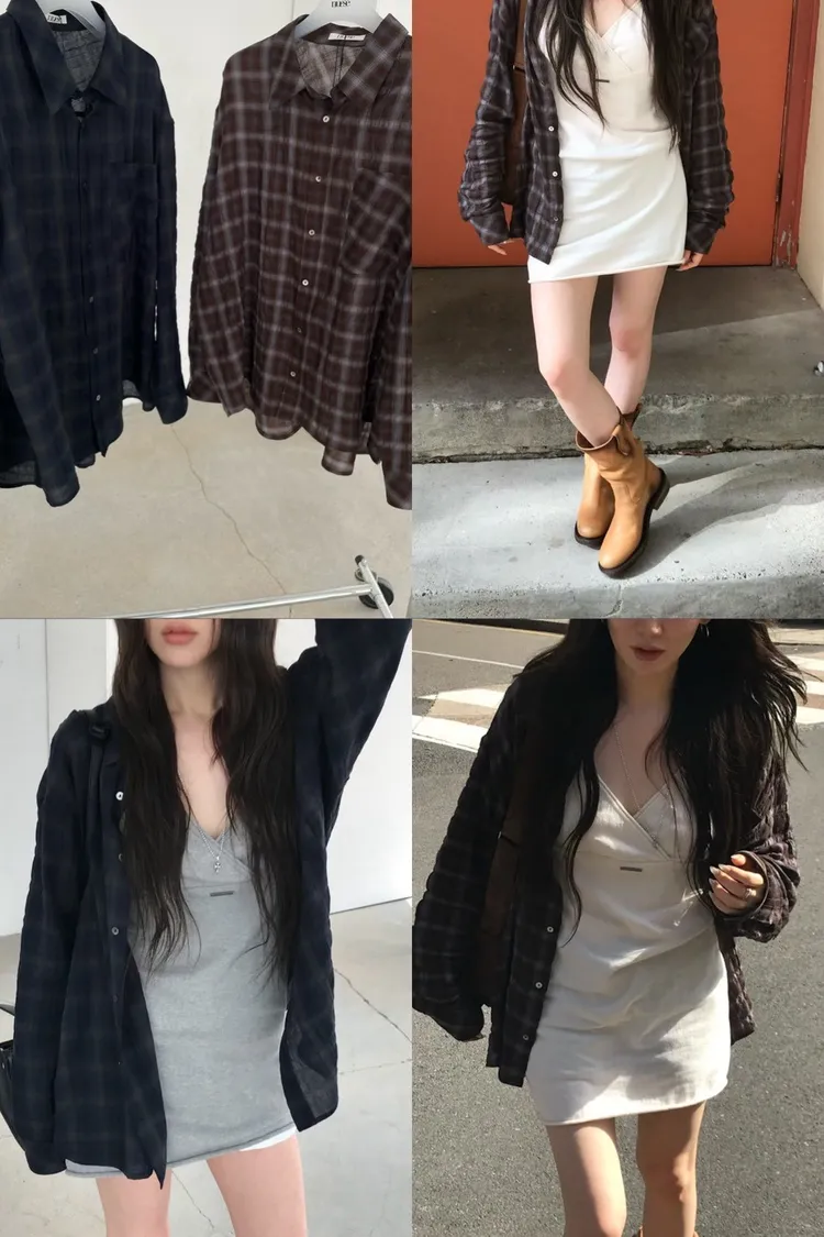 AA146韓風輕薄款格紋襯衫