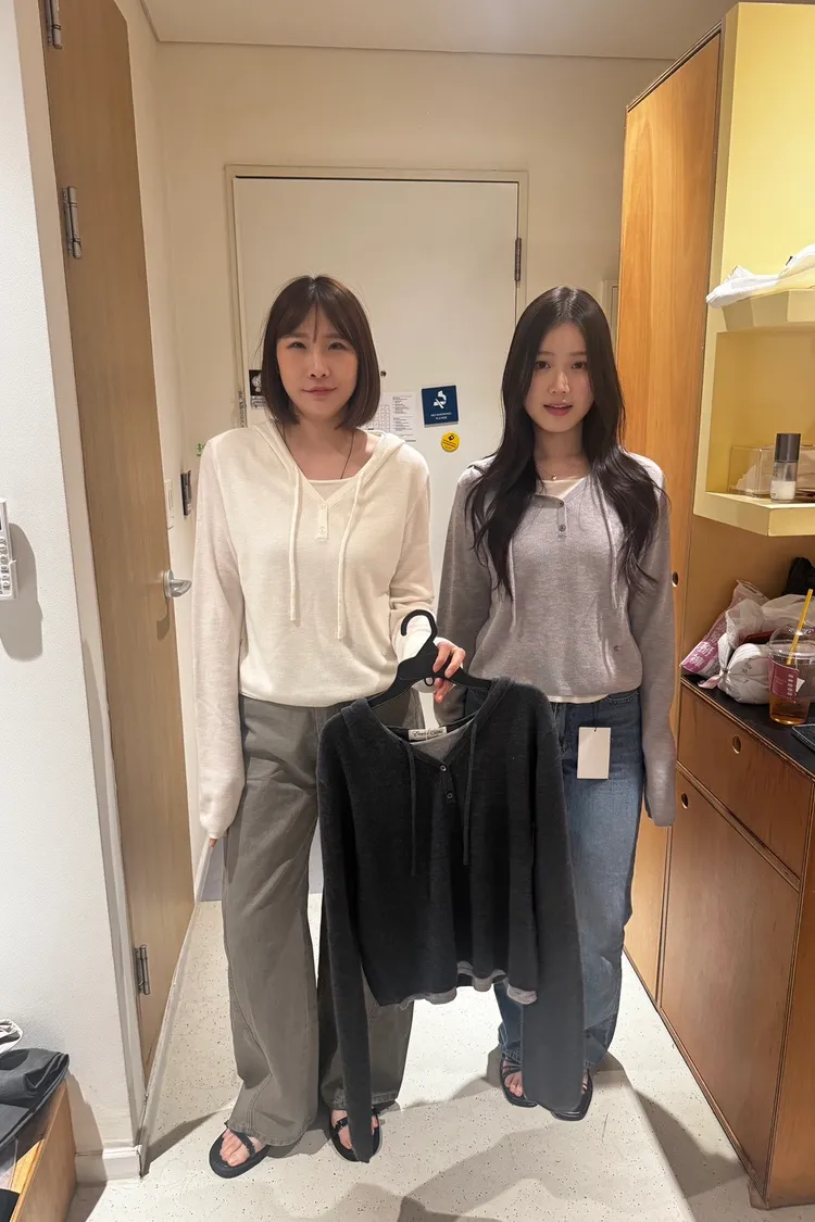 AA156可甜可鹽假兩件連帽針織上衣