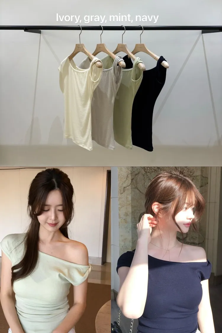 AA201溫柔系斜肩上衣