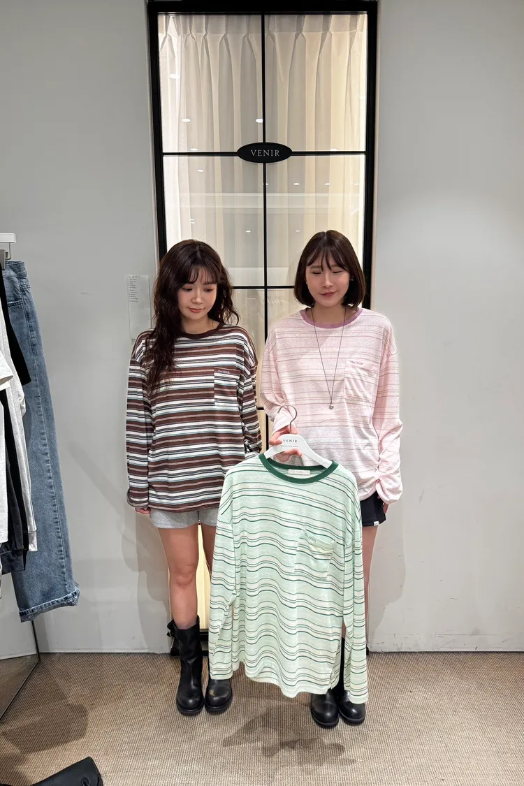 AA250蝦味仙慵懶校外教學混色橫條上衣