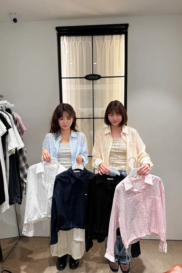 AA255超特別透格紋短版仿襯衫抽繩外套