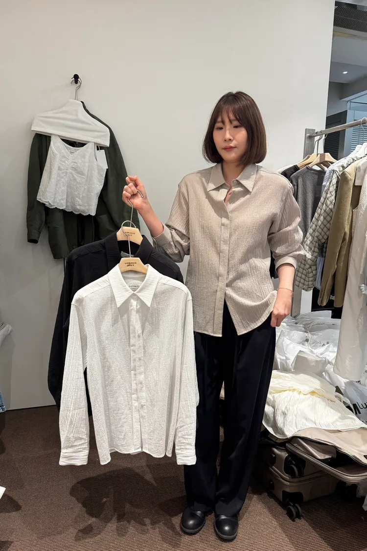 AA296-GREY皺皺水波紋理感襯衫