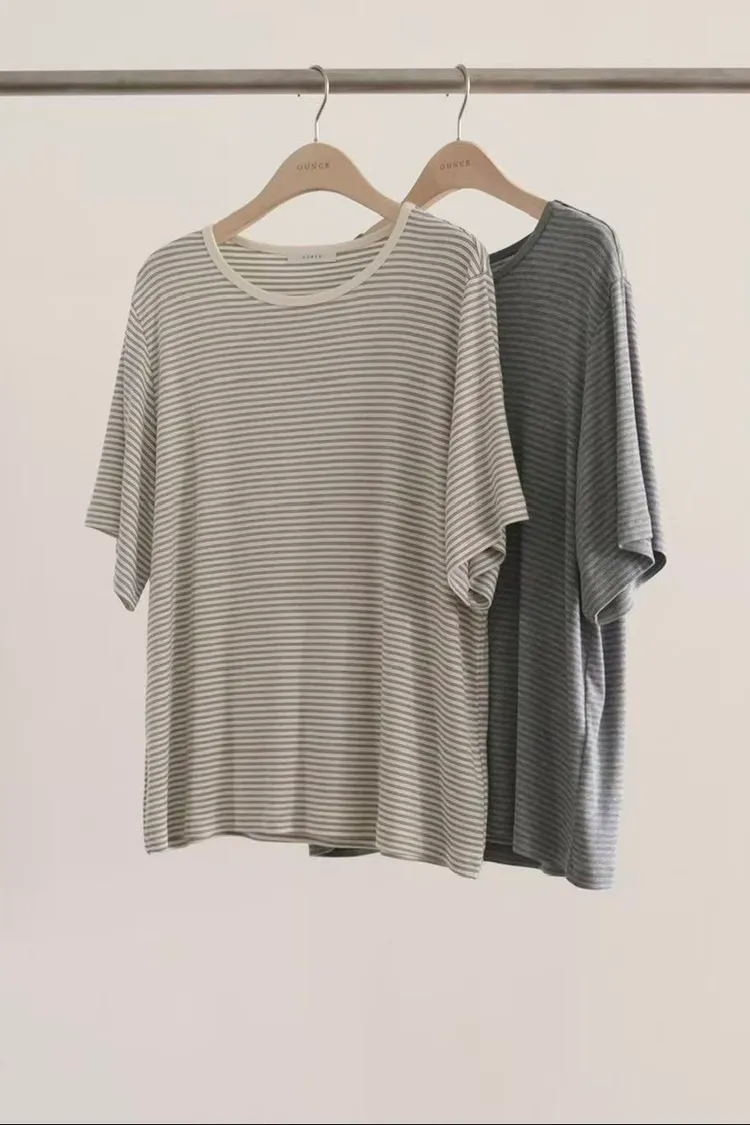 AA319推薦包色OUNCE寬鬆條紋短袖