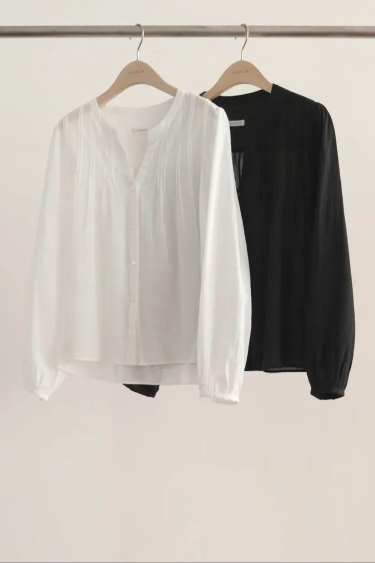 AA330-COCOA自留款!OUNCE塔克褶排釦上衣