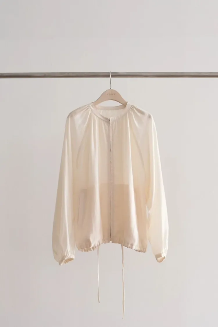 AA340-OUNCE仙氣光澤無領拉鍊抽繩外套