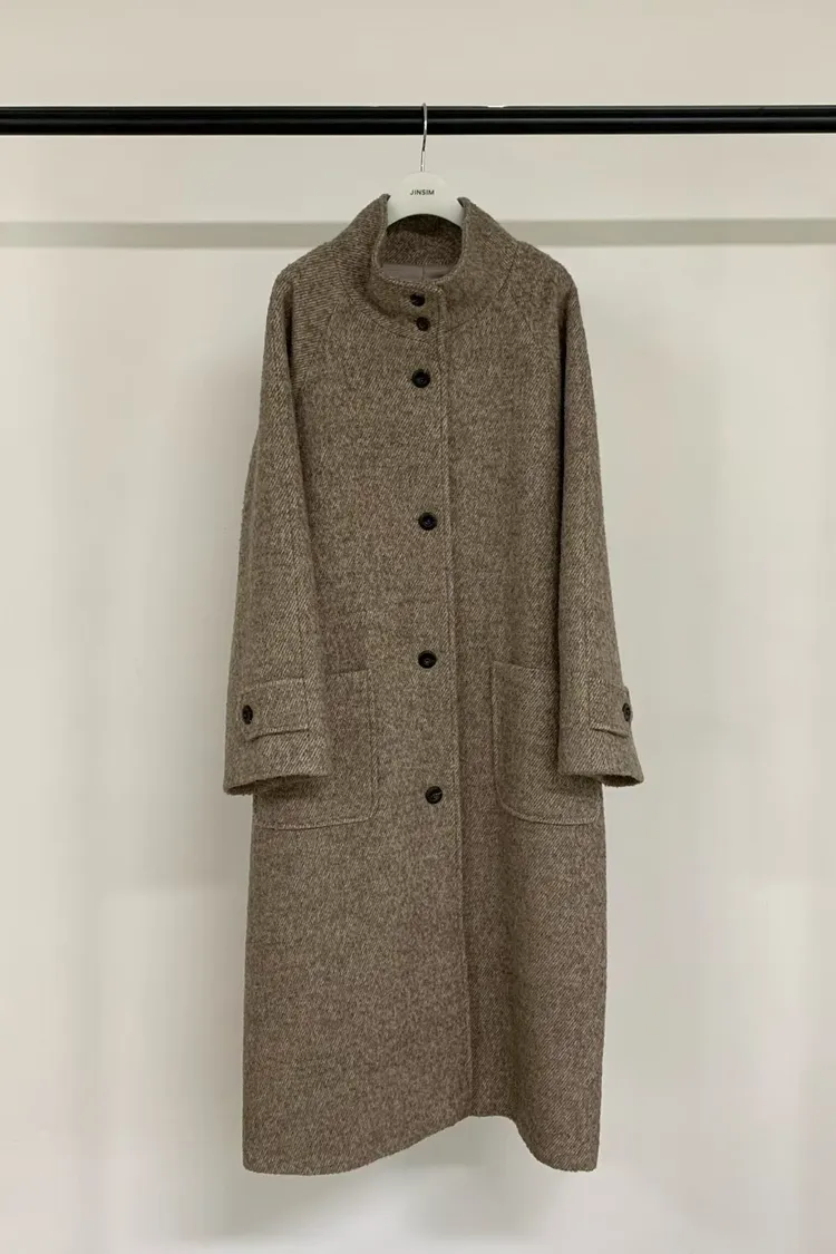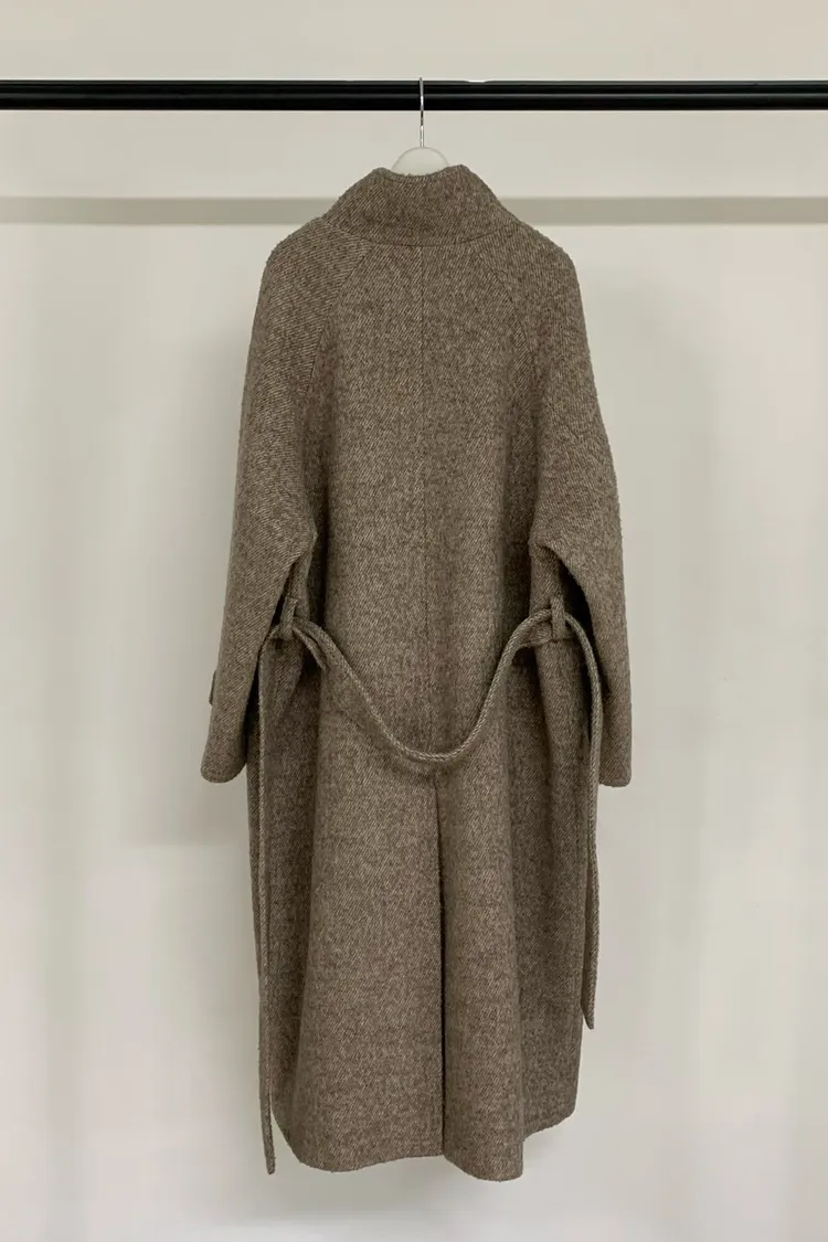 DD008自帶氣質chill high high咖色綁帶長版手工大衣