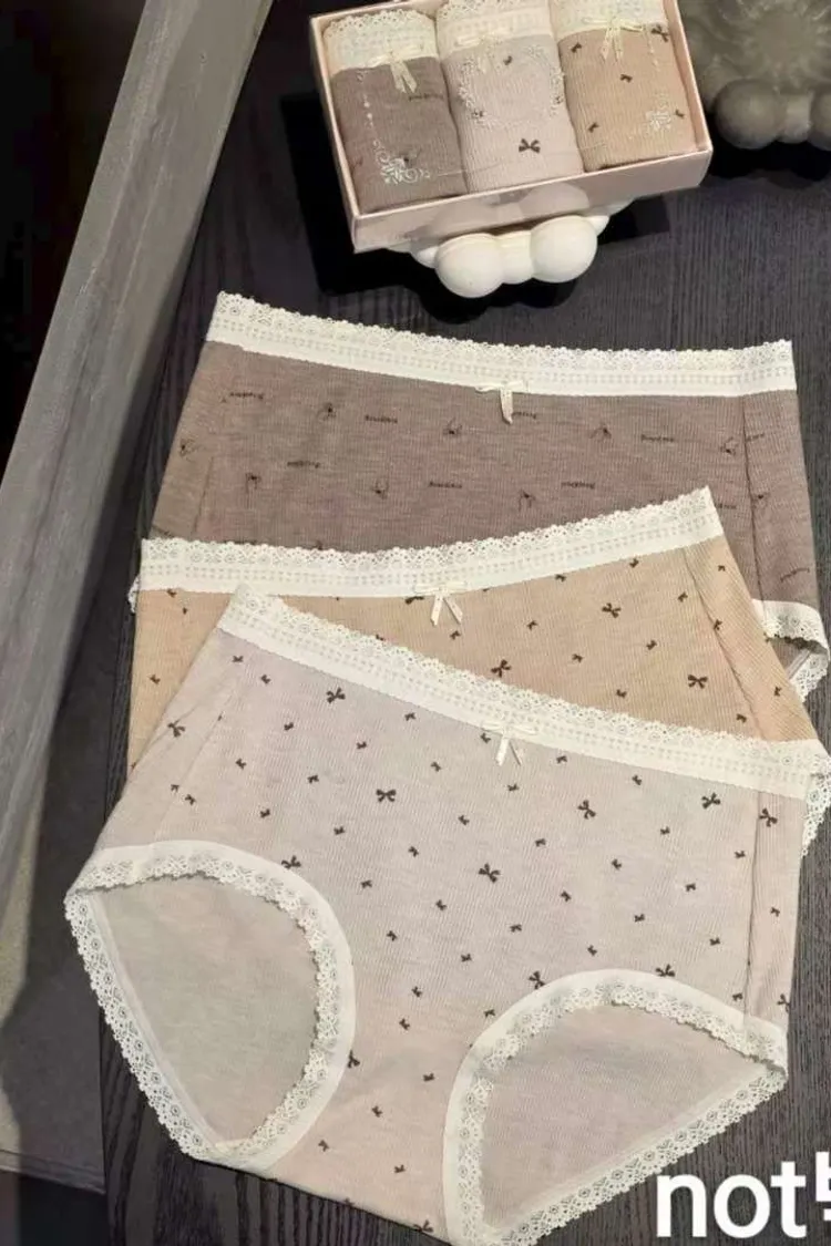 DD317蕾絲邊滿版蝴蝶結三件組內褲
