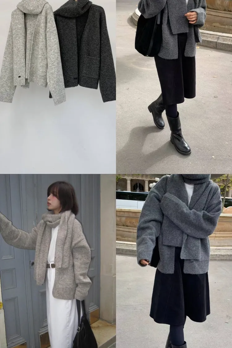 DD324愛笑眼睛有滿滿細節在附圍巾雙口袋開衫
