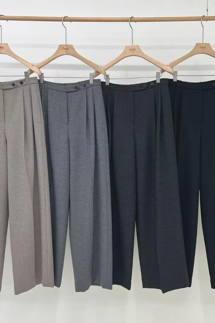 EE084大家都可以駕馭!!側釦後鬆緊壓褶西裝褲