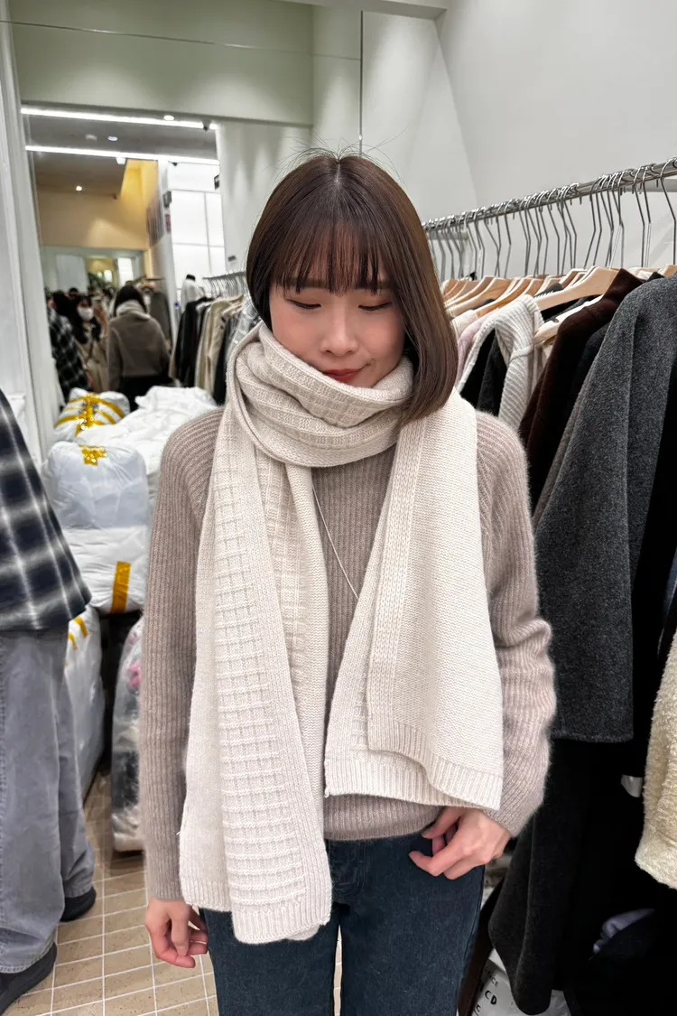 EE292搭配性高!!一面格子一面素面愛咪醬家圍巾