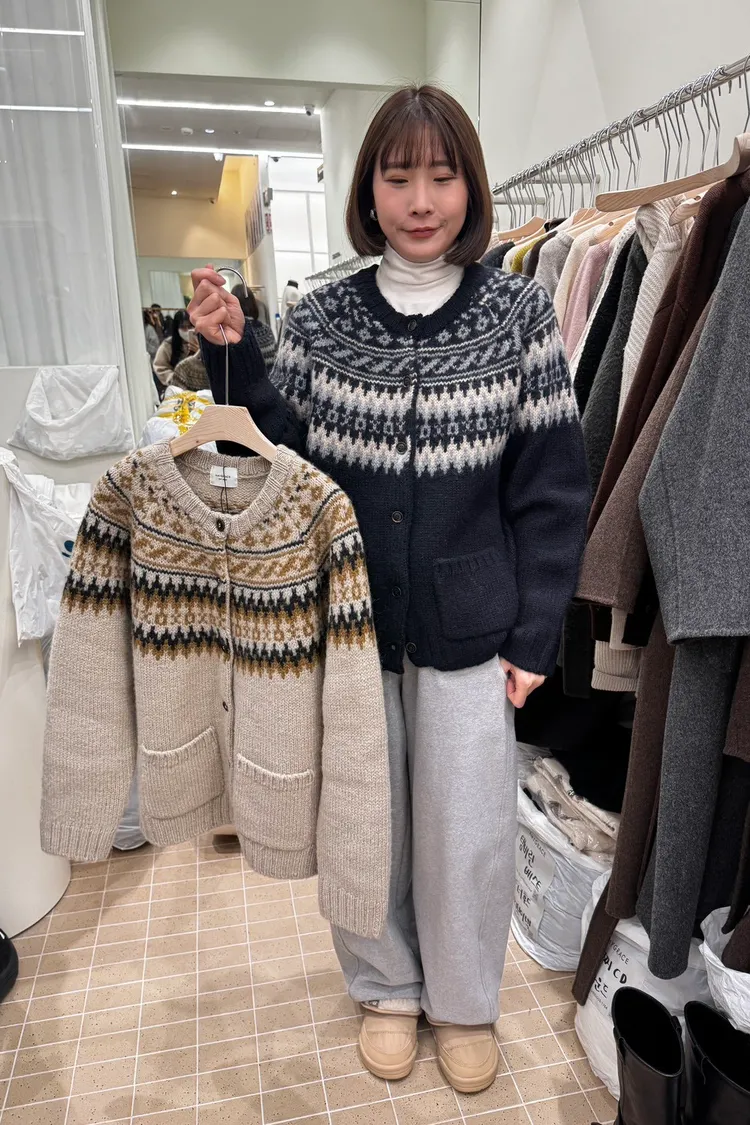 EE297很有質感!!愛咪醬家貝爾島圖騰排釦毛衣