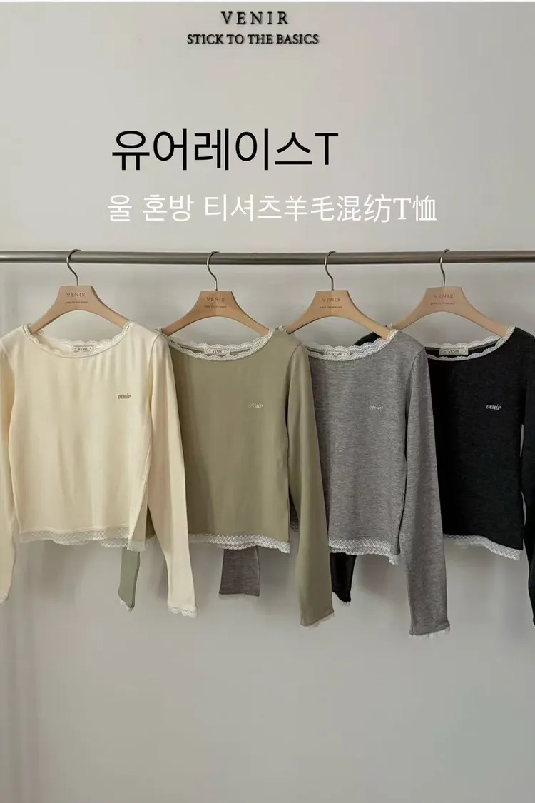 EE332蝦味仙純慾系氛圍蕾絲邊羊毛上衣
