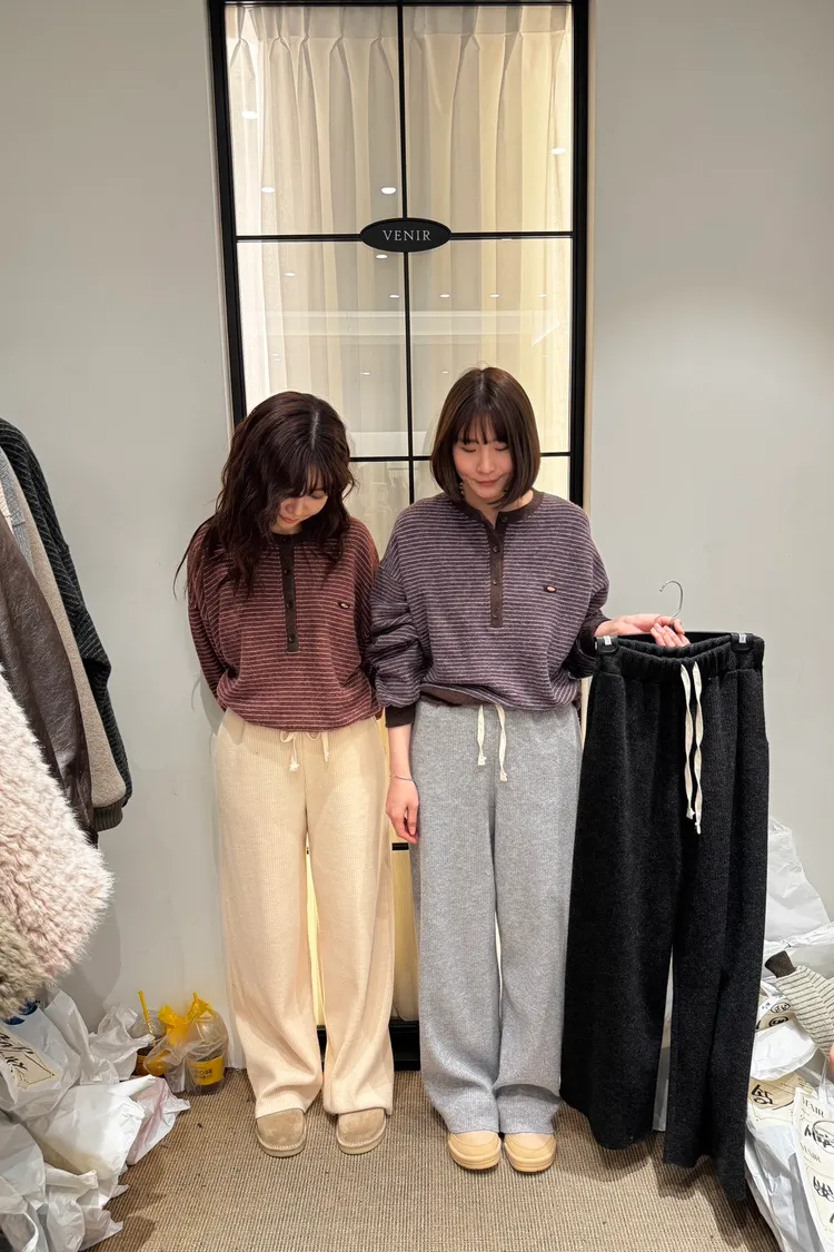 EE336表面針織但不顯胖蝦味仙抽繩坑條長褲