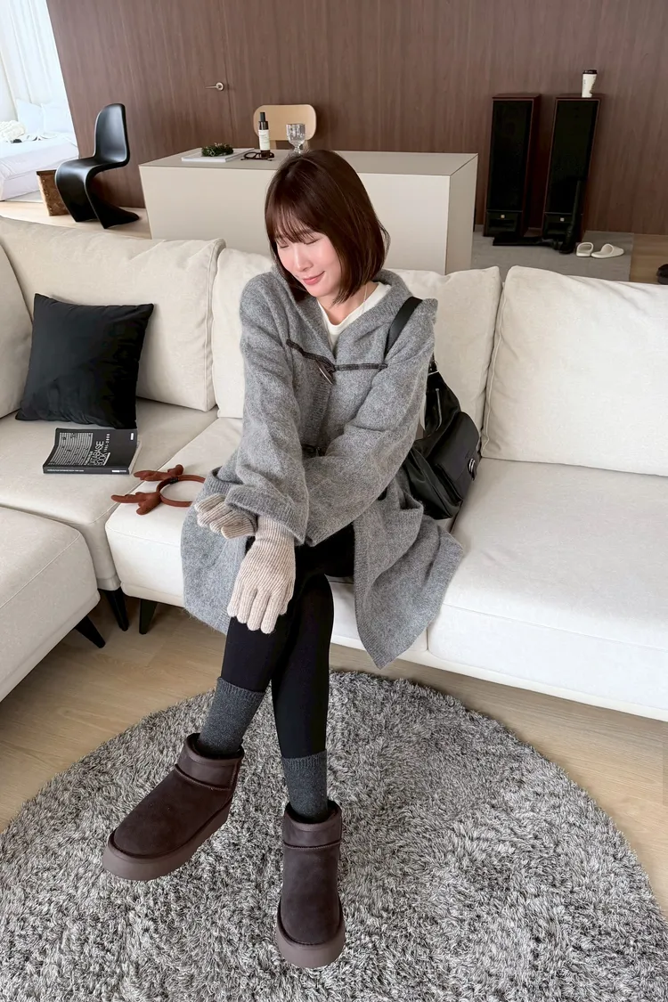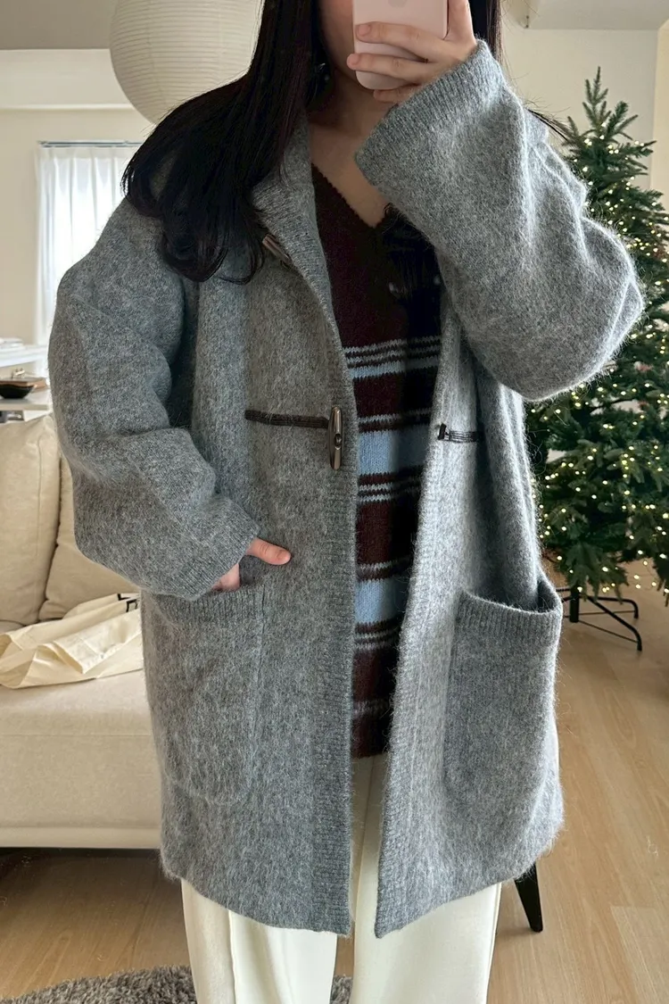 EE356-mellounge雙口袋連帽牛角扣針織外套