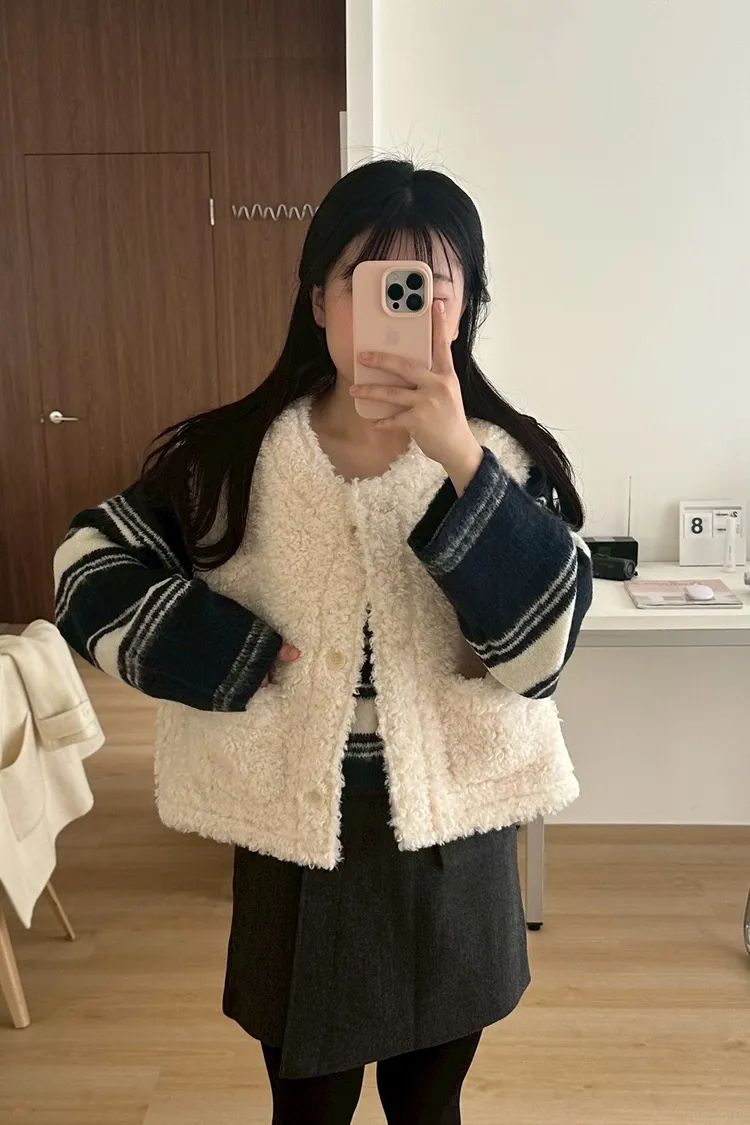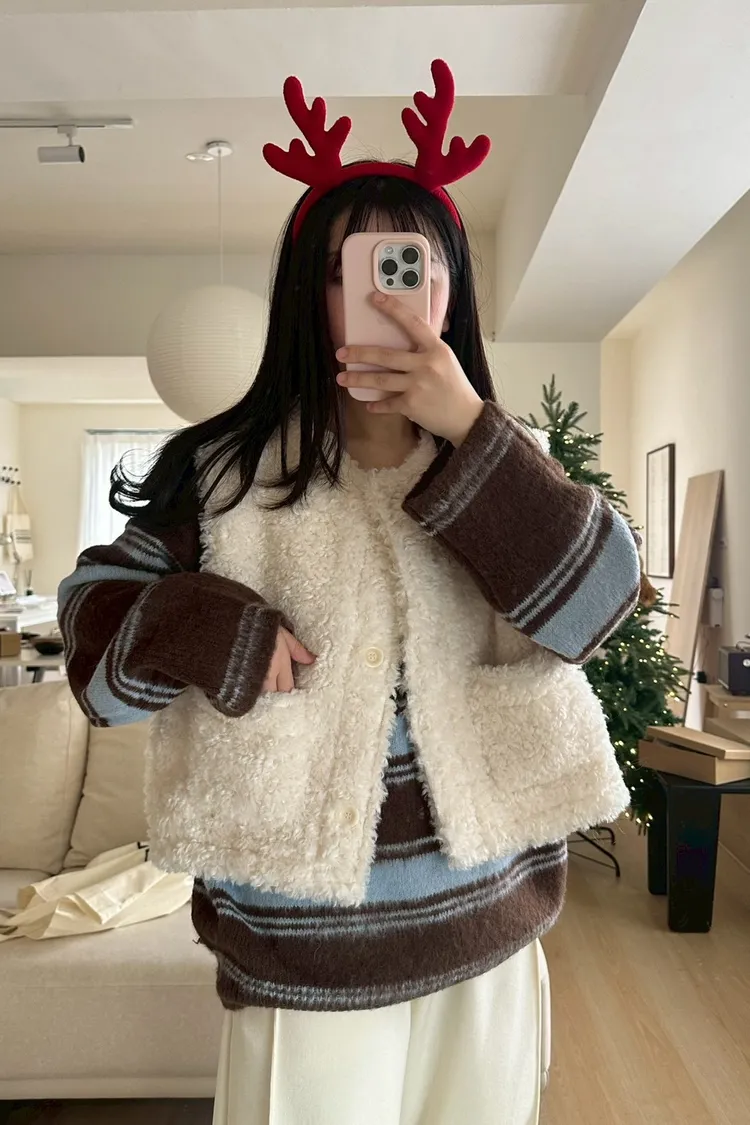 EE357很可愛QQ毛雙口袋背心