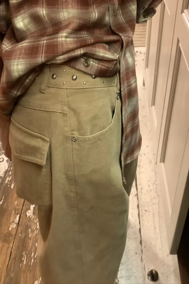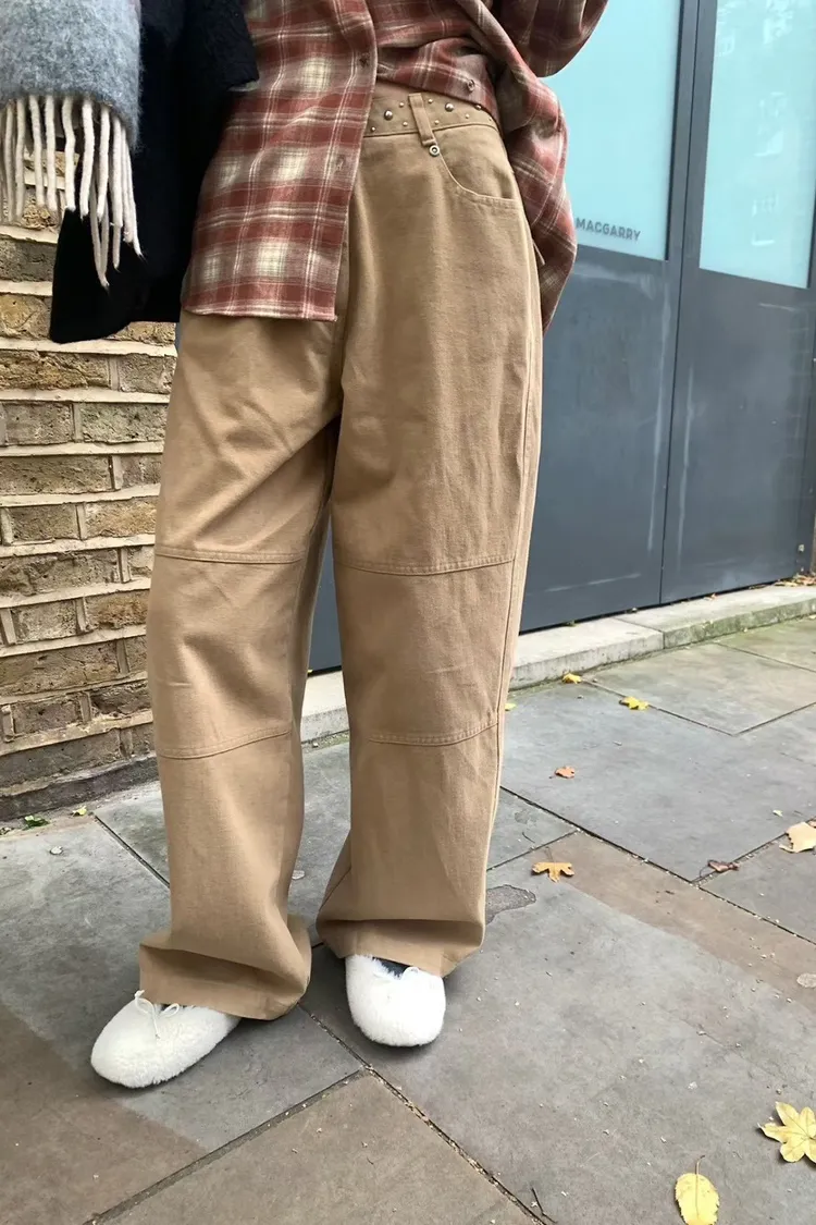 EE378穿起來非常高級秋冬色系鹼型感鉚釘長褲