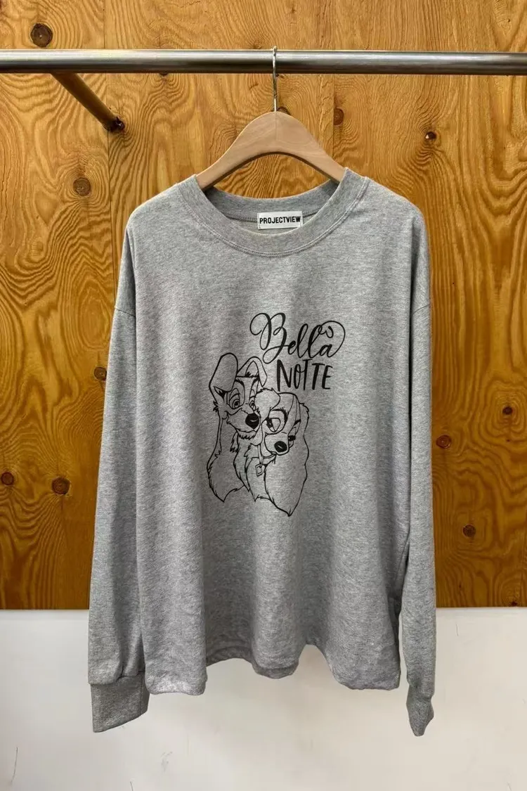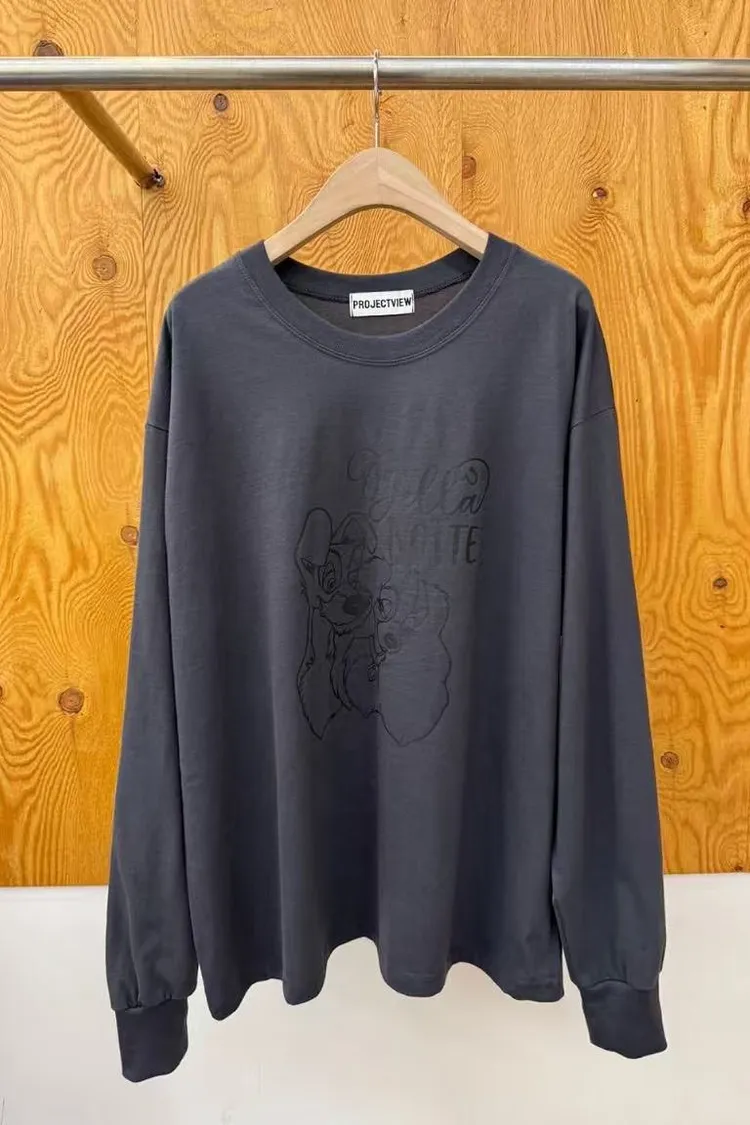 EE391草寫英文淑女與流氓狗狗長袖上衣
