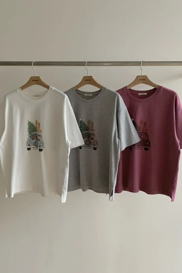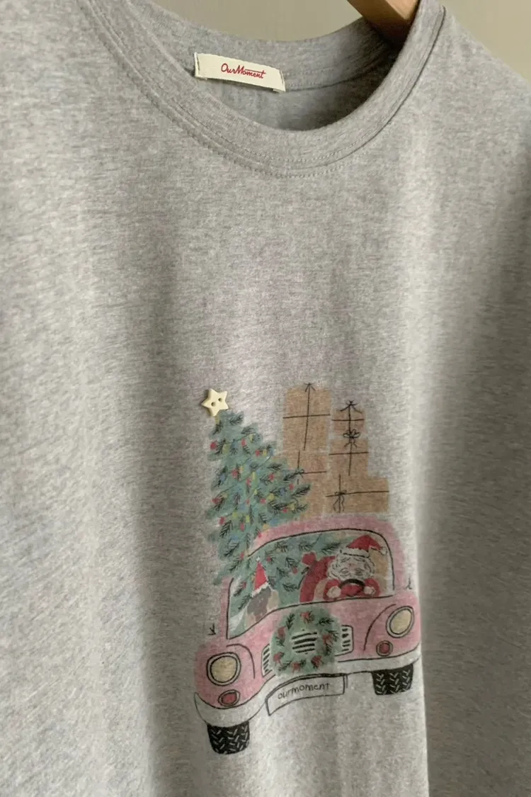 EE392熊抱哥家聖誕老公公載聖誕樹短袖TEE