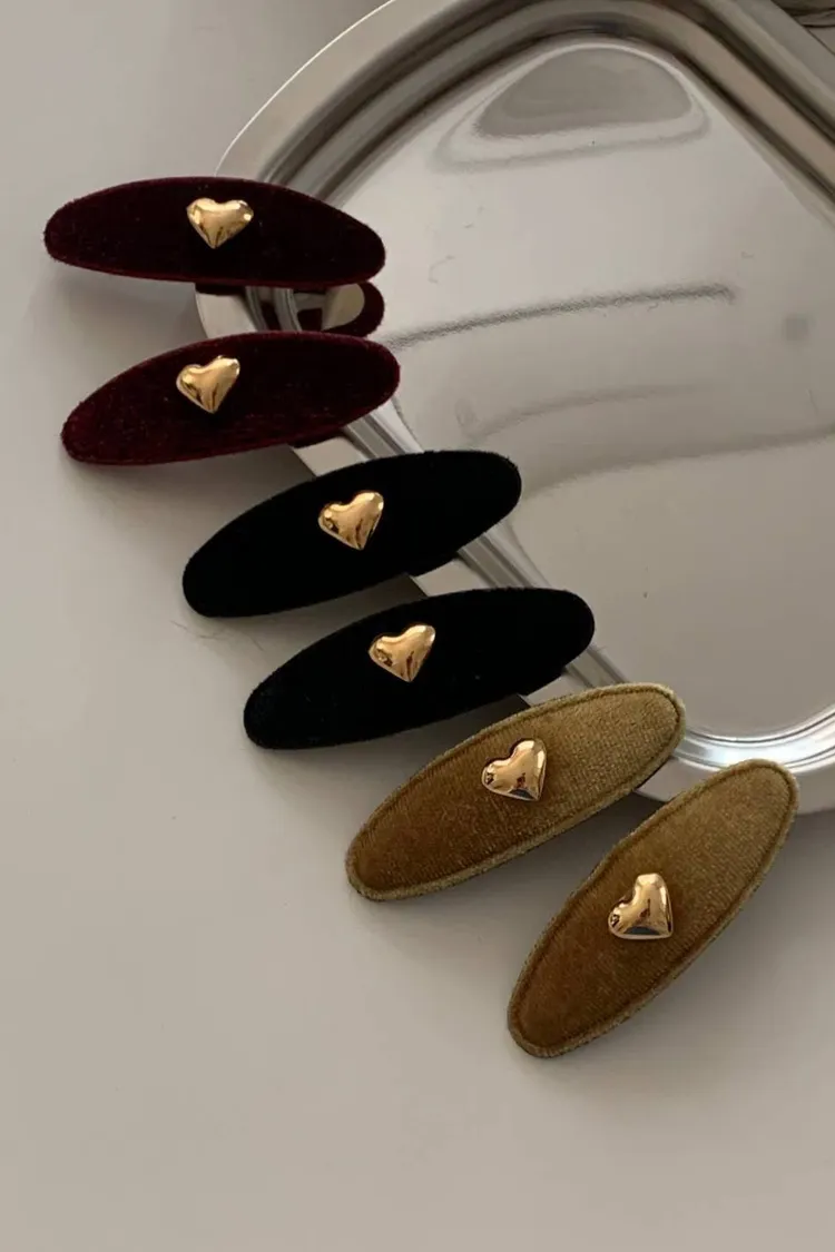 EE406氣質金色愛心絲絨感髮夾(一組)
