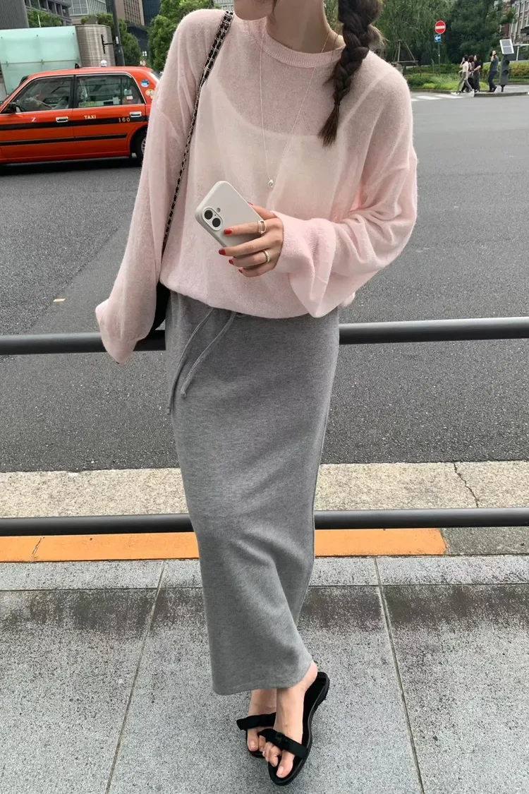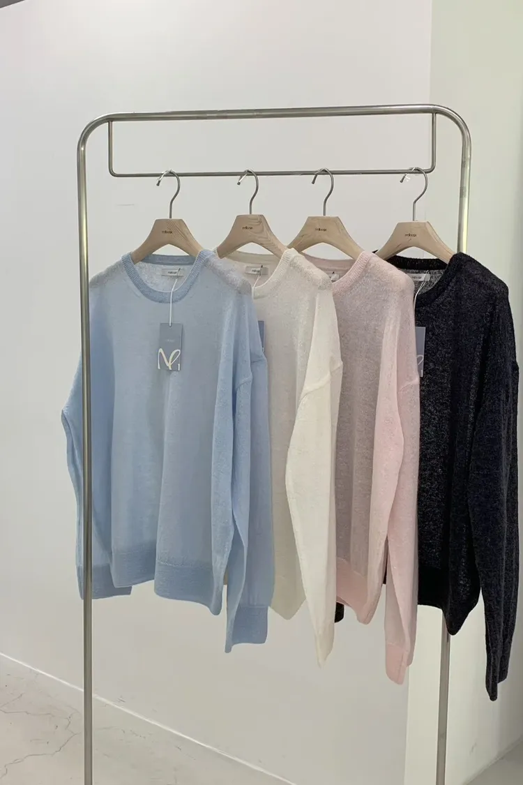 GG082-mellounge羊駝毛針織微透圓領長袖