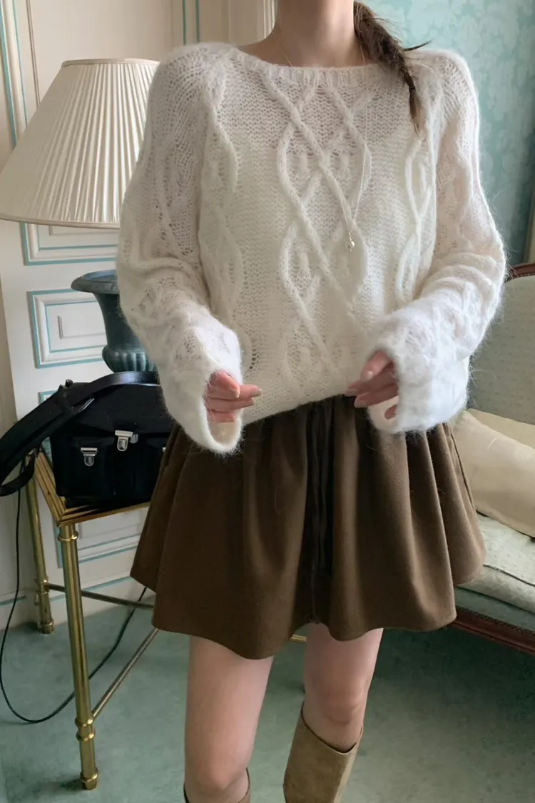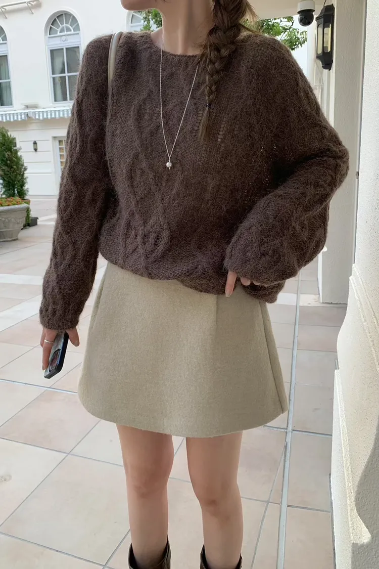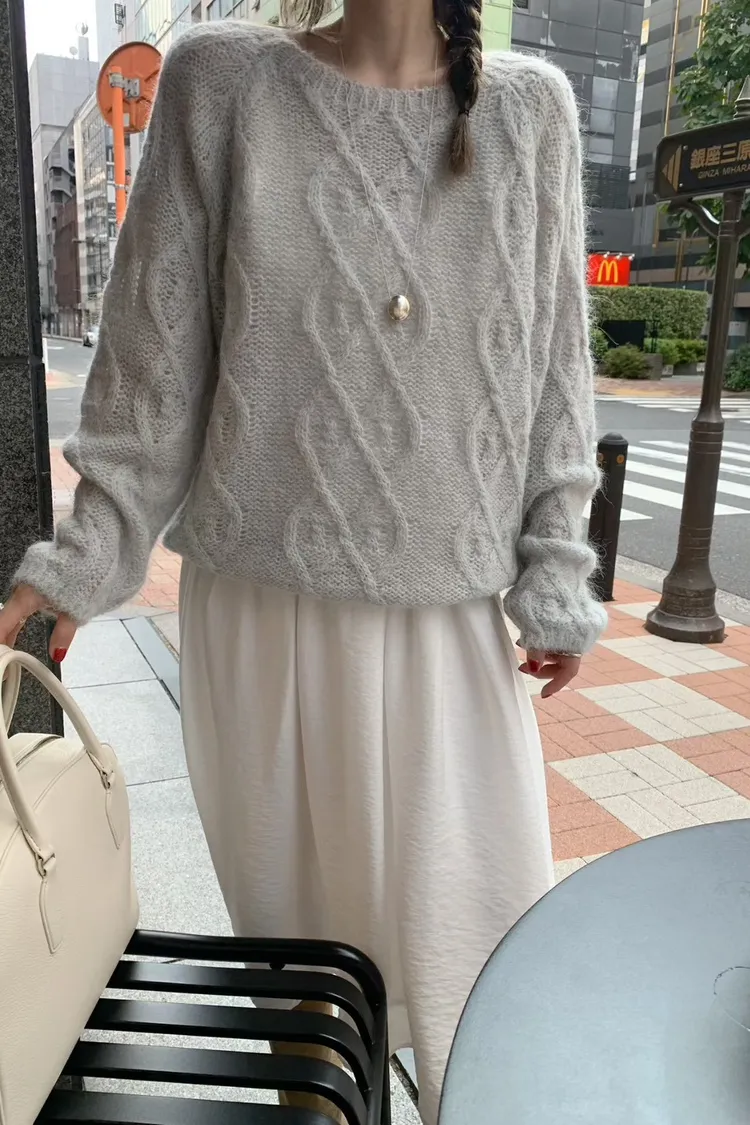 GG084-mellounge立體麻花紋路毛衣