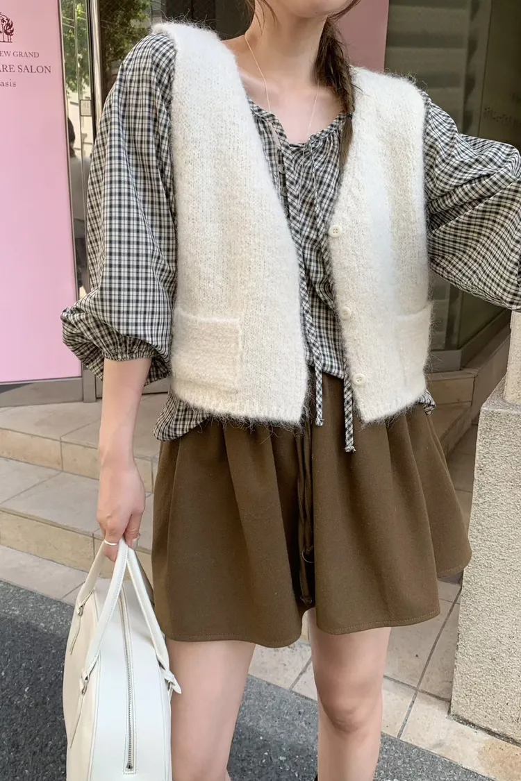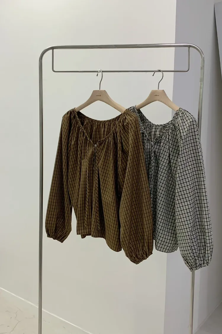 GG090-mellounge復古風情格子五釦綁帶上衣