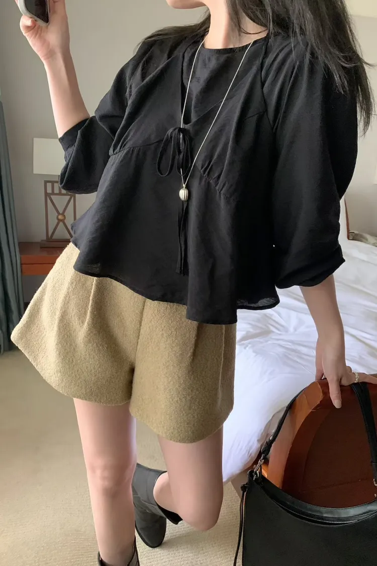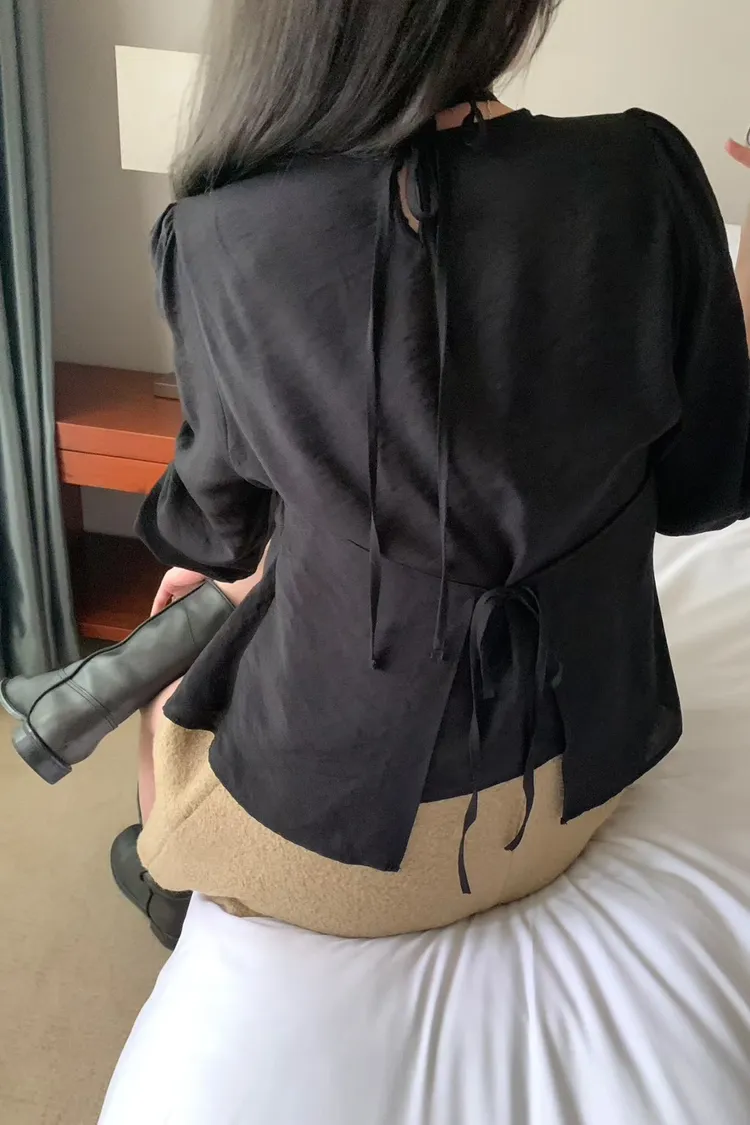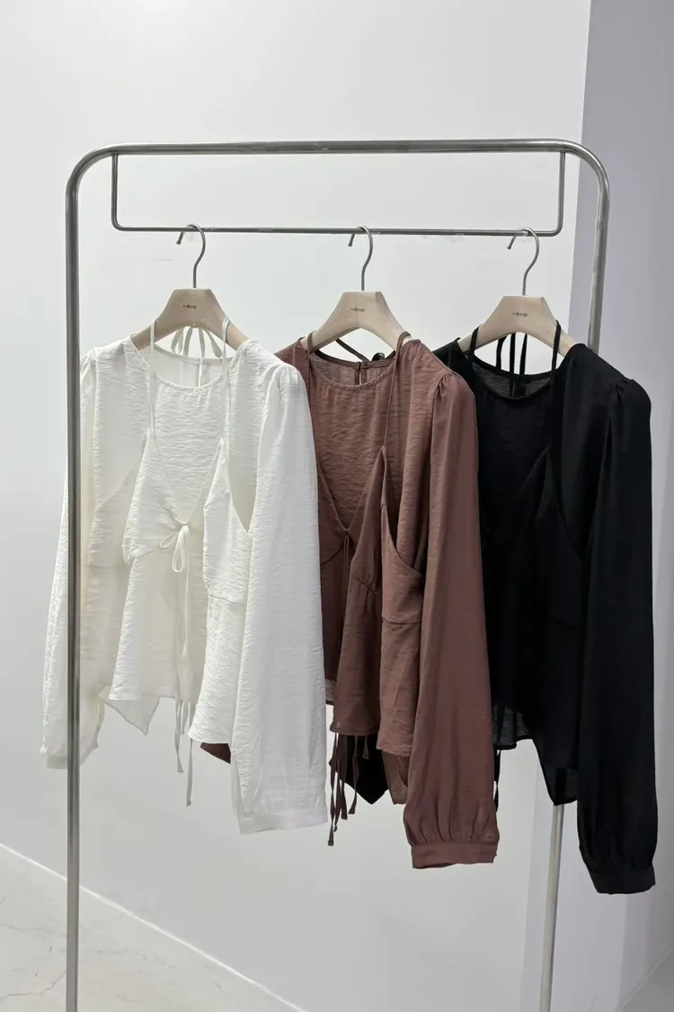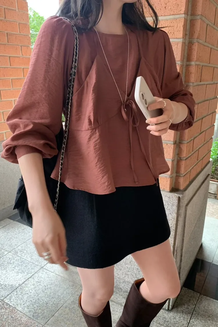 GG093-mellounge隨意綁蝴蝶結就很美假兩件上衣