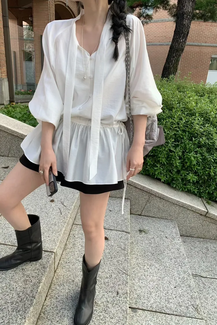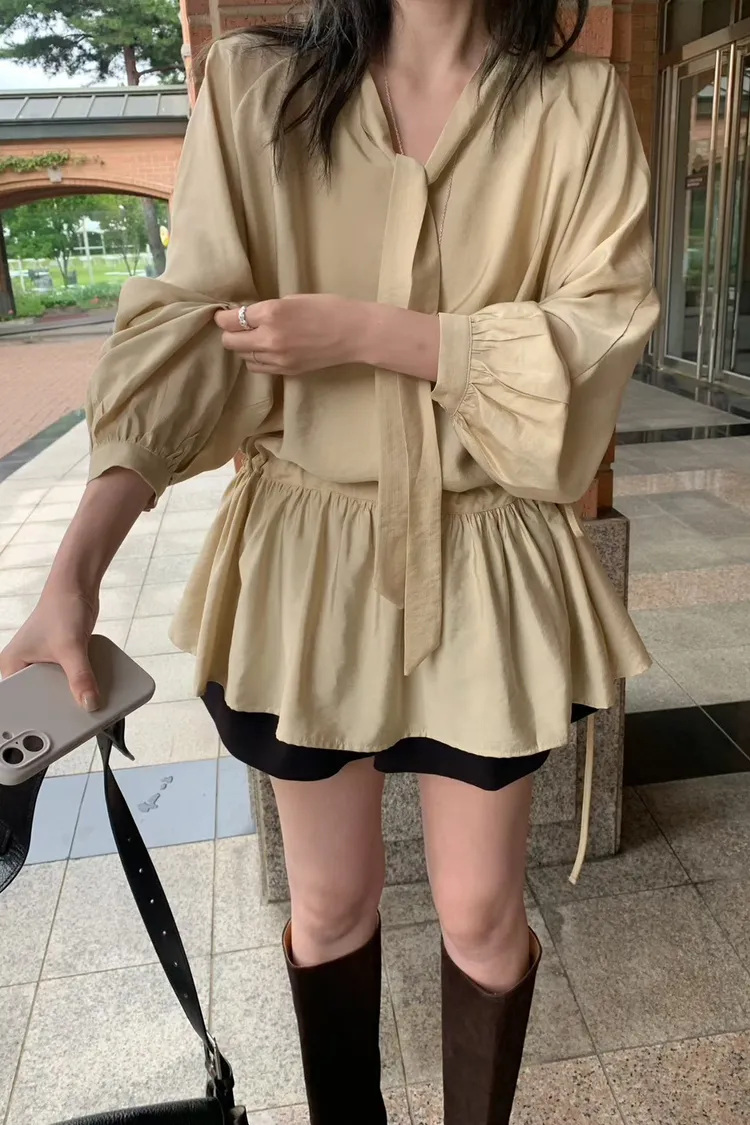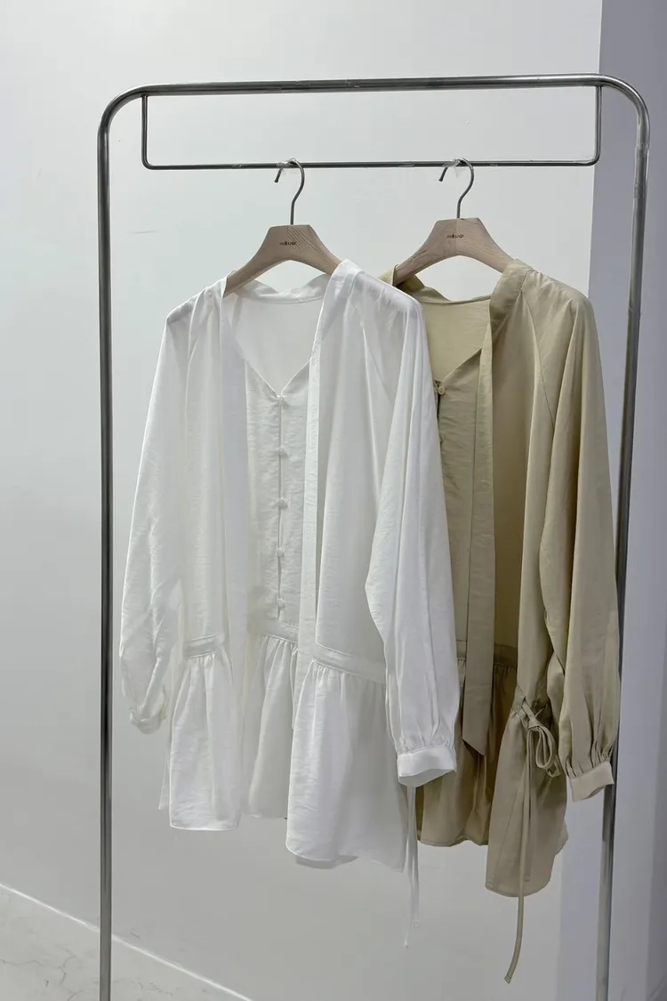 GG095-mellounge韓劇千金綁帶排扣上衣