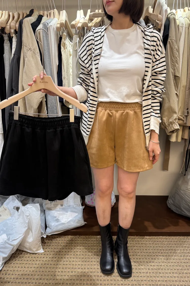 GG187-Flatyou仿麂皮鬆緊帶短褲