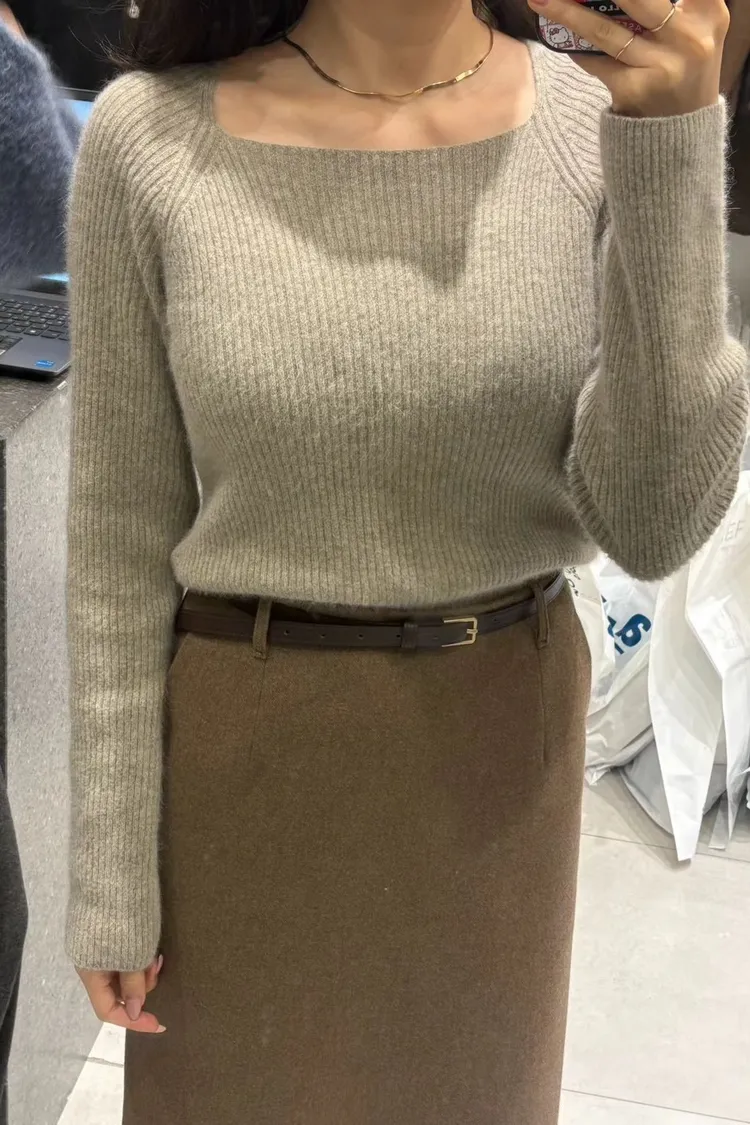 GG225很美~若隱若現露鎖骨仙氣坑條羊毛上衣
