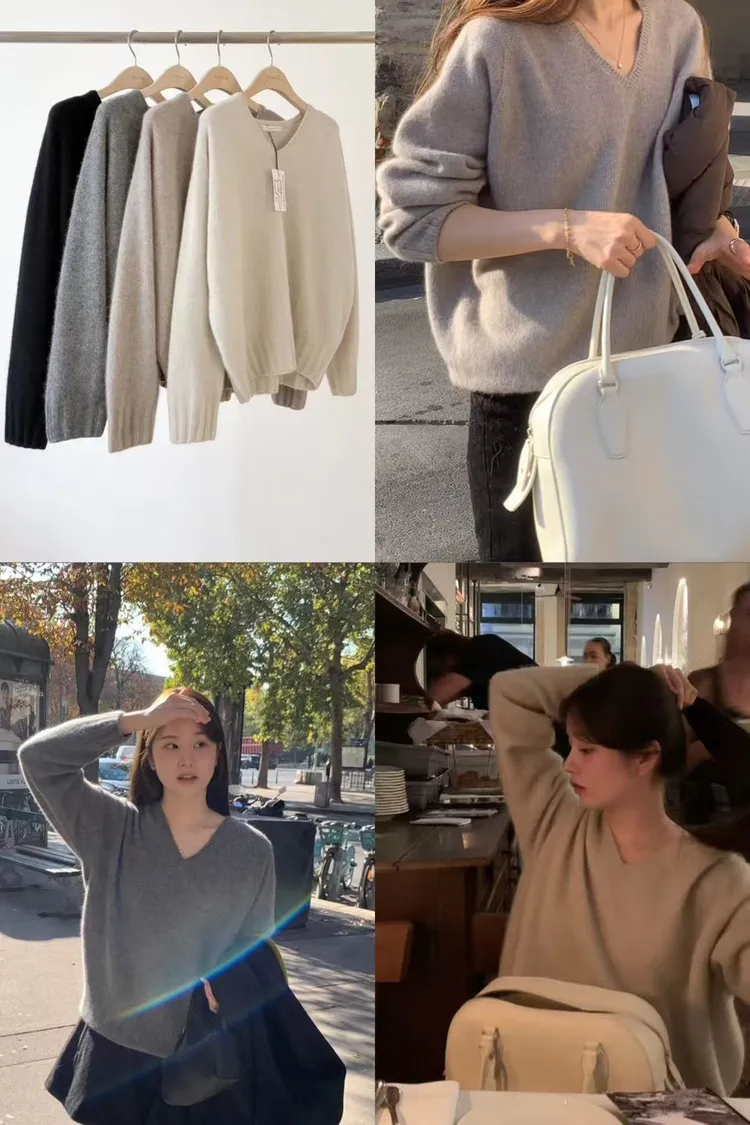 HH358鬆弛燭光晚餐V領毛衣