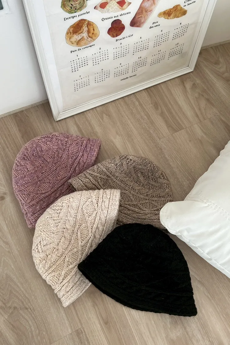 HH514慵懶麻花針織漁夫帽