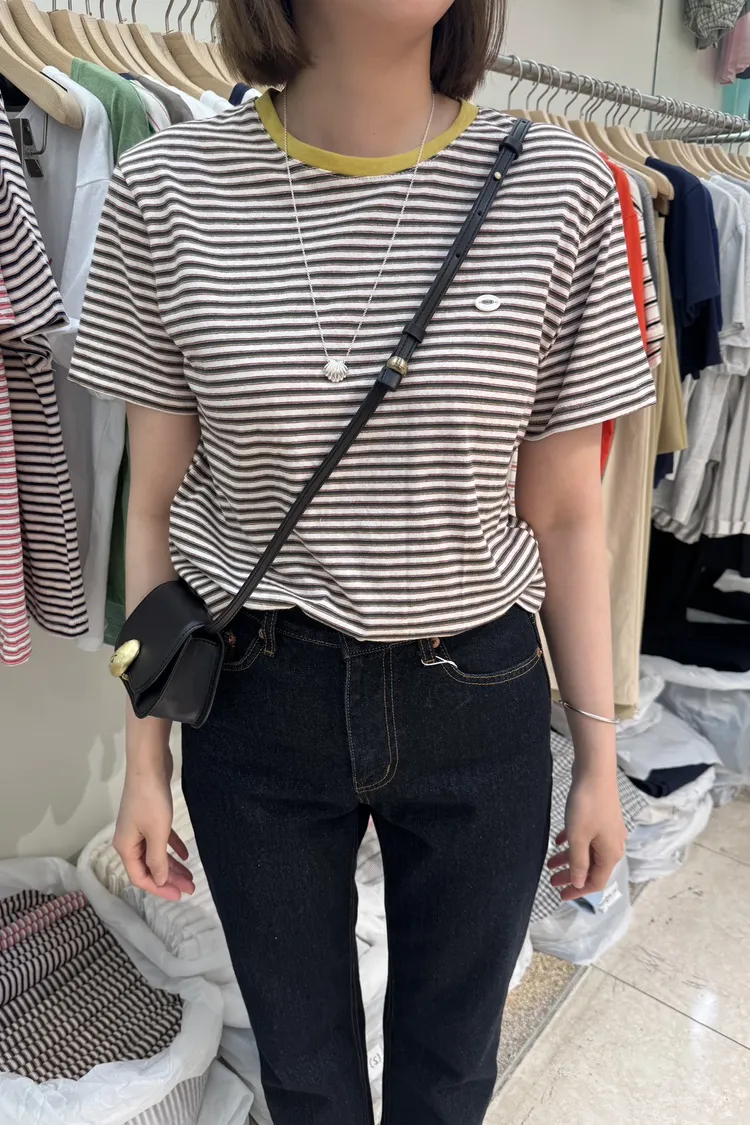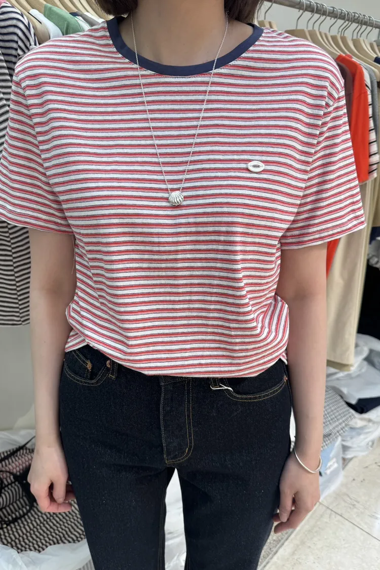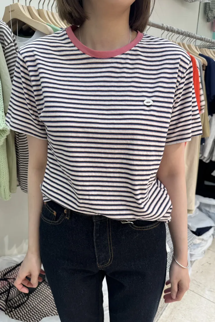 KK006看領子顏色喊單!壓克力小標條紋短袖