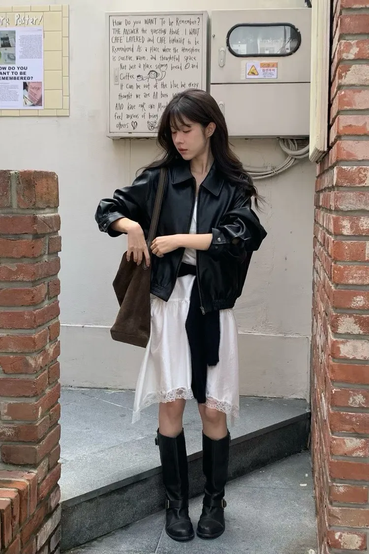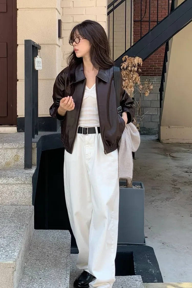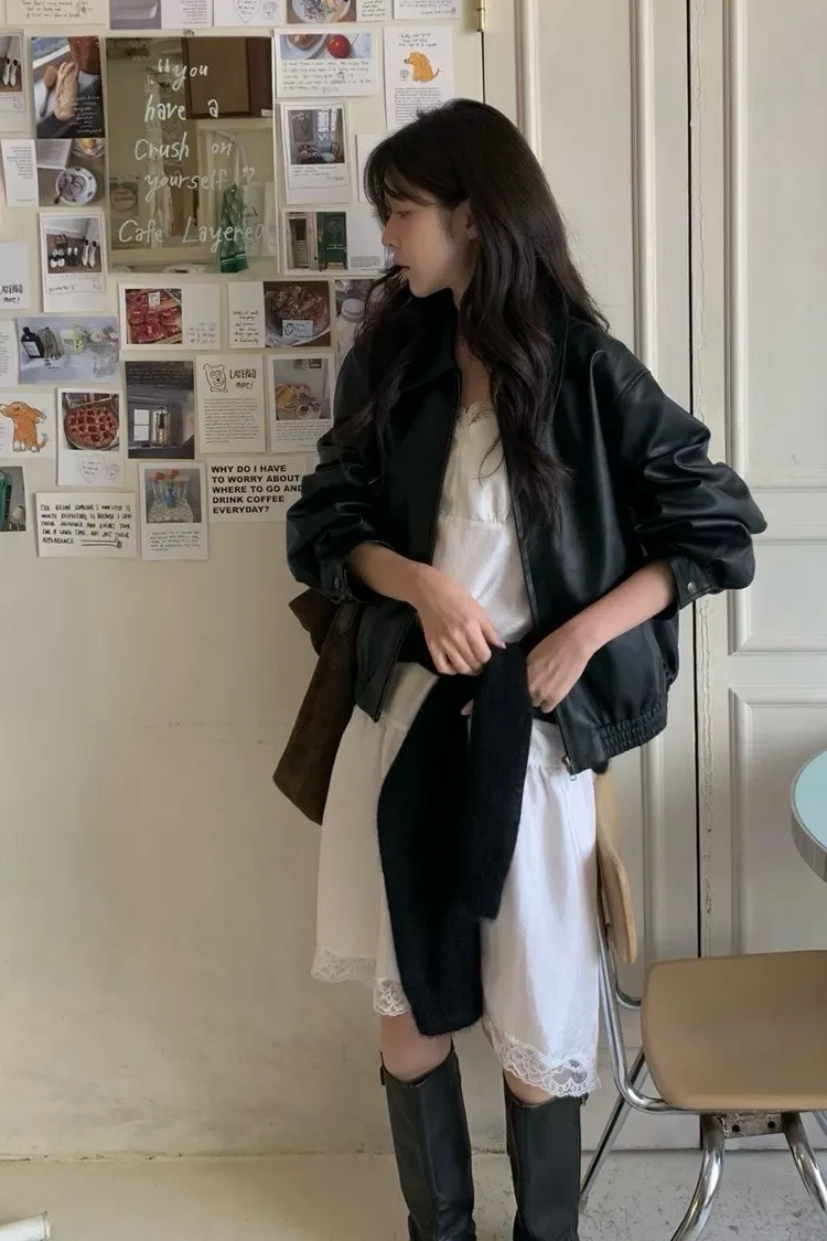 LL010小個會愛上~愛牌翻領拉鍊皮外套