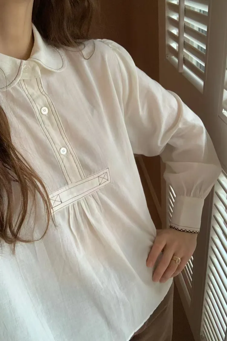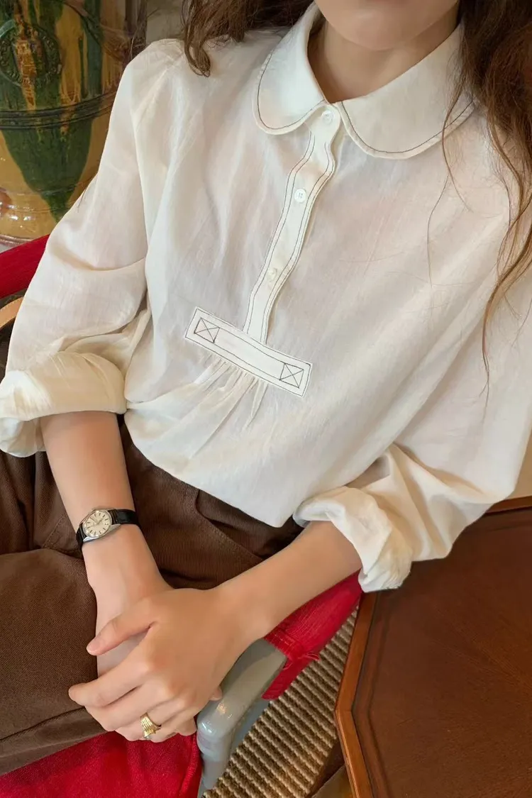 LL220歐膩家主款!!必買前面設計感排釦娃娃領上衣