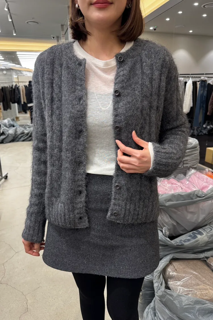 MM035-COCOA愛店表面毛感灰色排釦毛衣SAEL