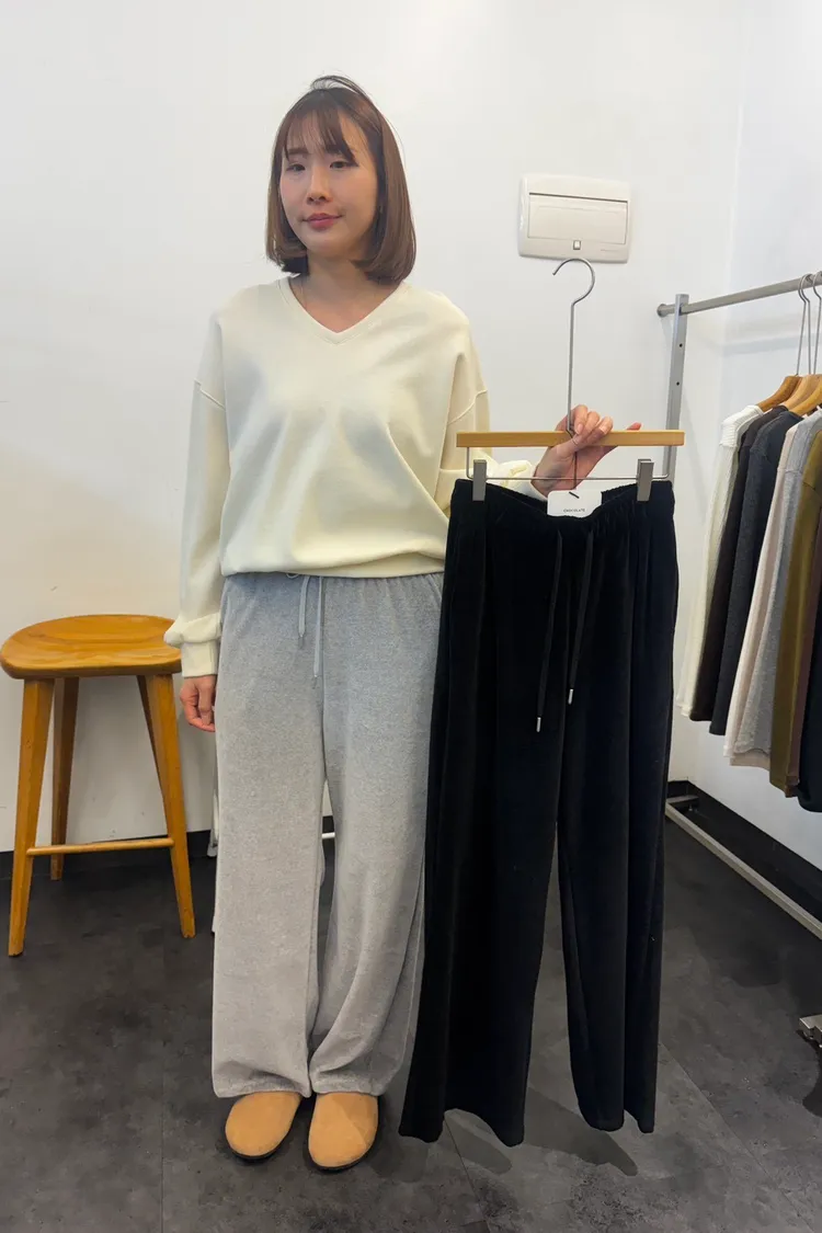 MM059巧克力表面有點絨布感抽繩長褲