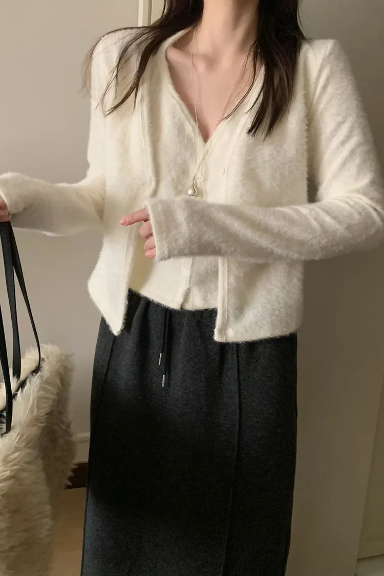 MM064羽毛感排扣背心+外罩假兩件SET組合