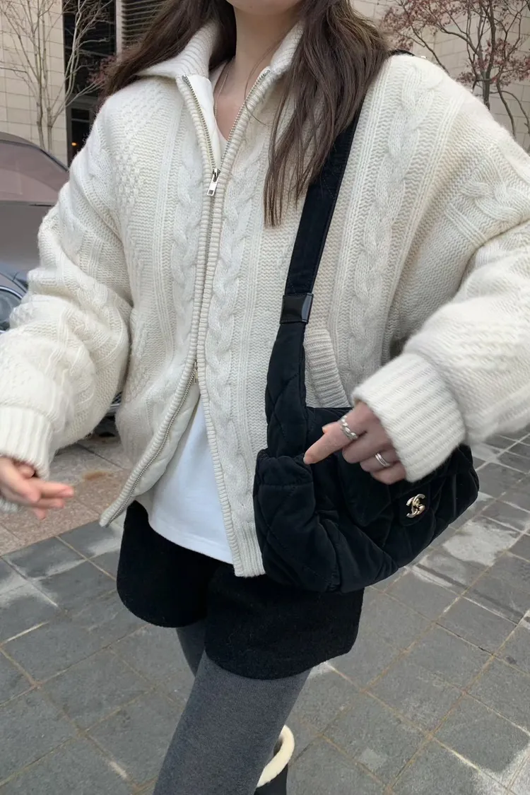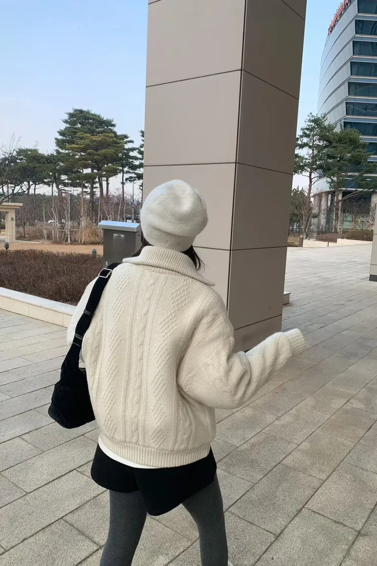 MM074-mellounge內裡是鴨絨的翻領麻花拉鍊外套