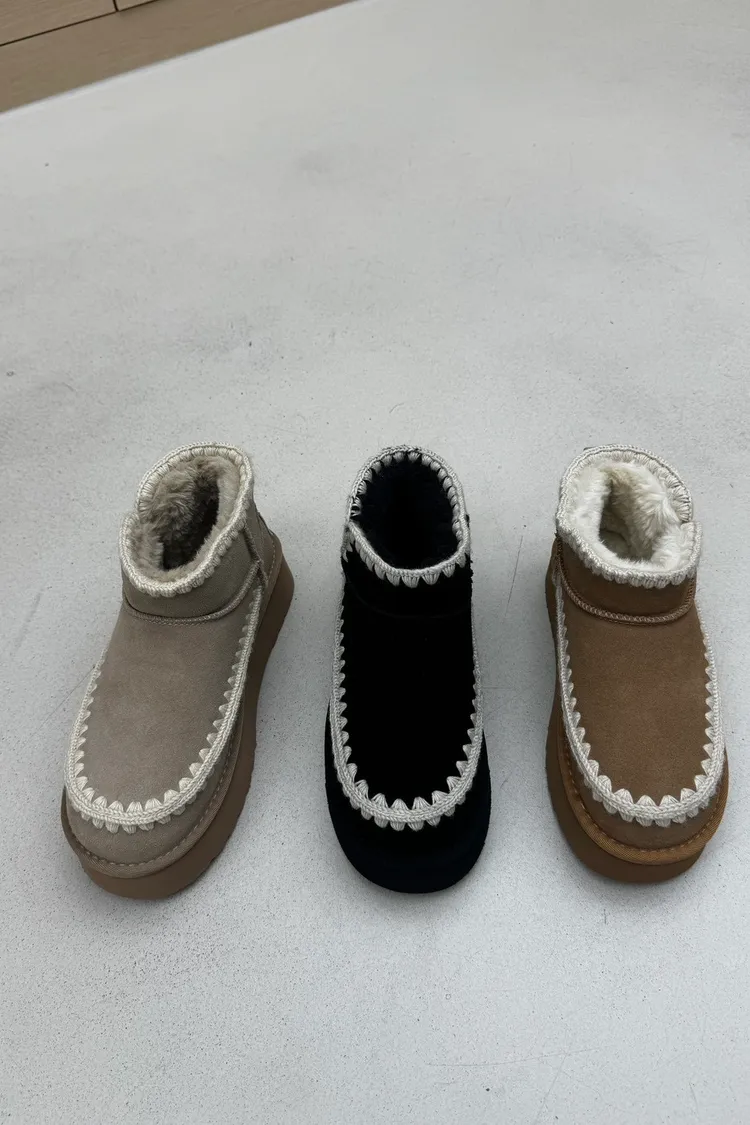 MM080有點民族風邊邊厚底短雪靴