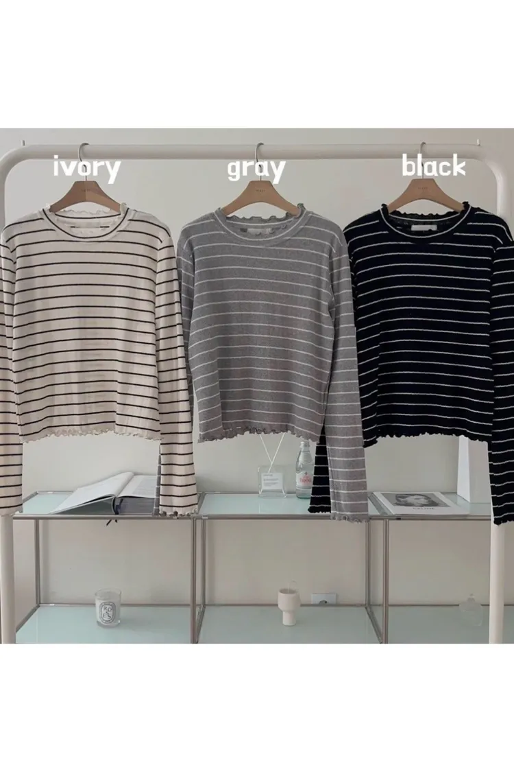 MM126表面洞洞緹花捲邊條紋上衣