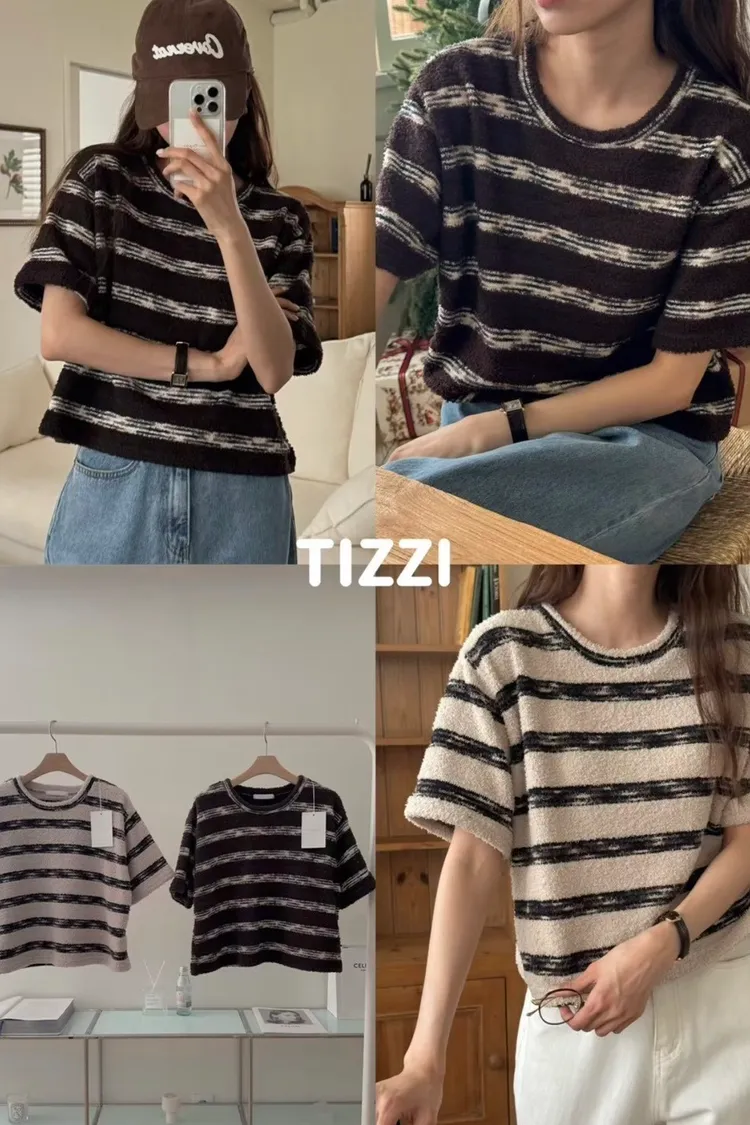 MM132毛絨感Tizzi條紋寬鬆短袖TEE