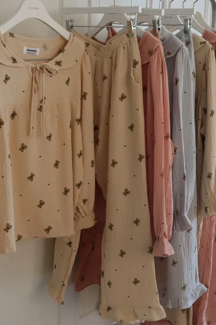 MM167娃娃領綁帶滿版熊熊睡衣