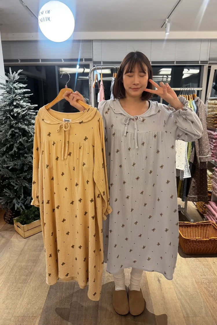 MM168娃娃領綁帶滿版熊熊睡裙