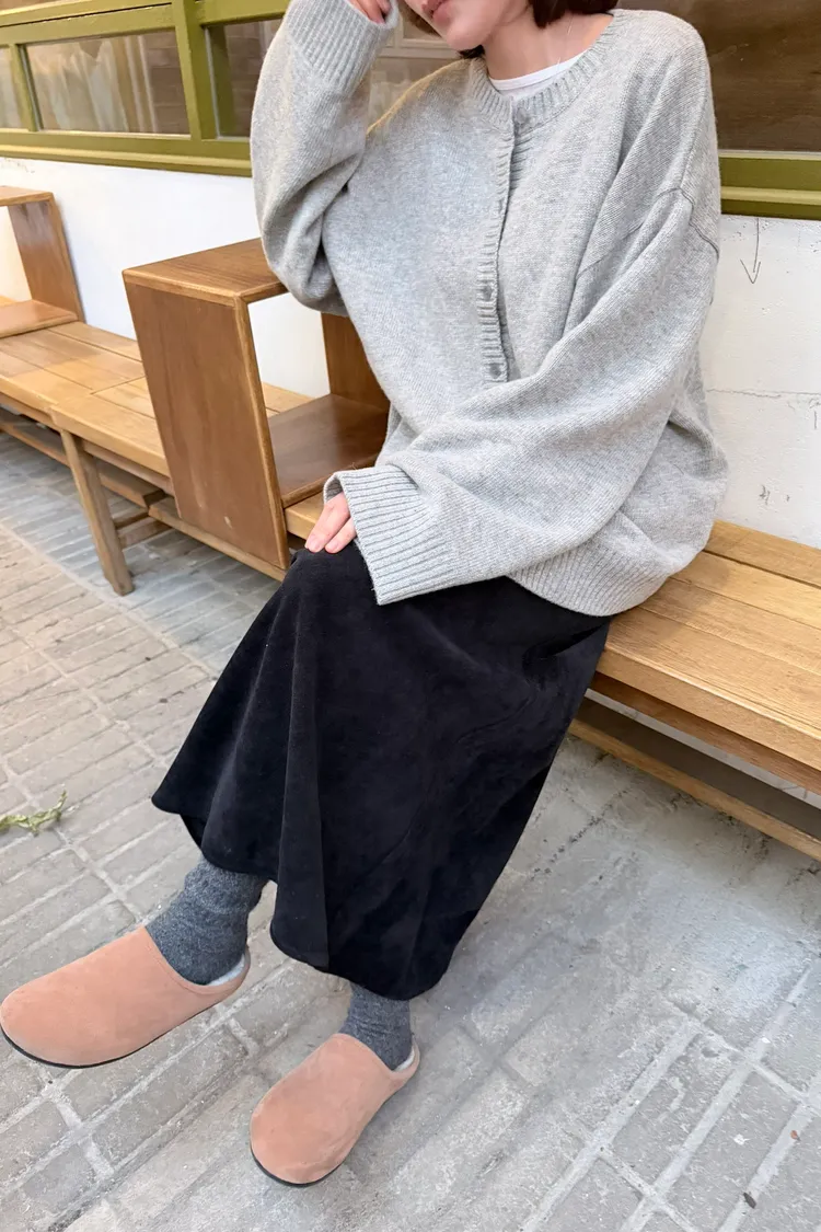 MM230值得你留住有口袋大A字不黏毛絲絨抽繩長裙