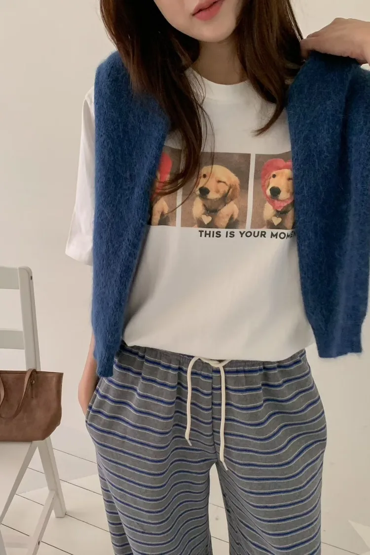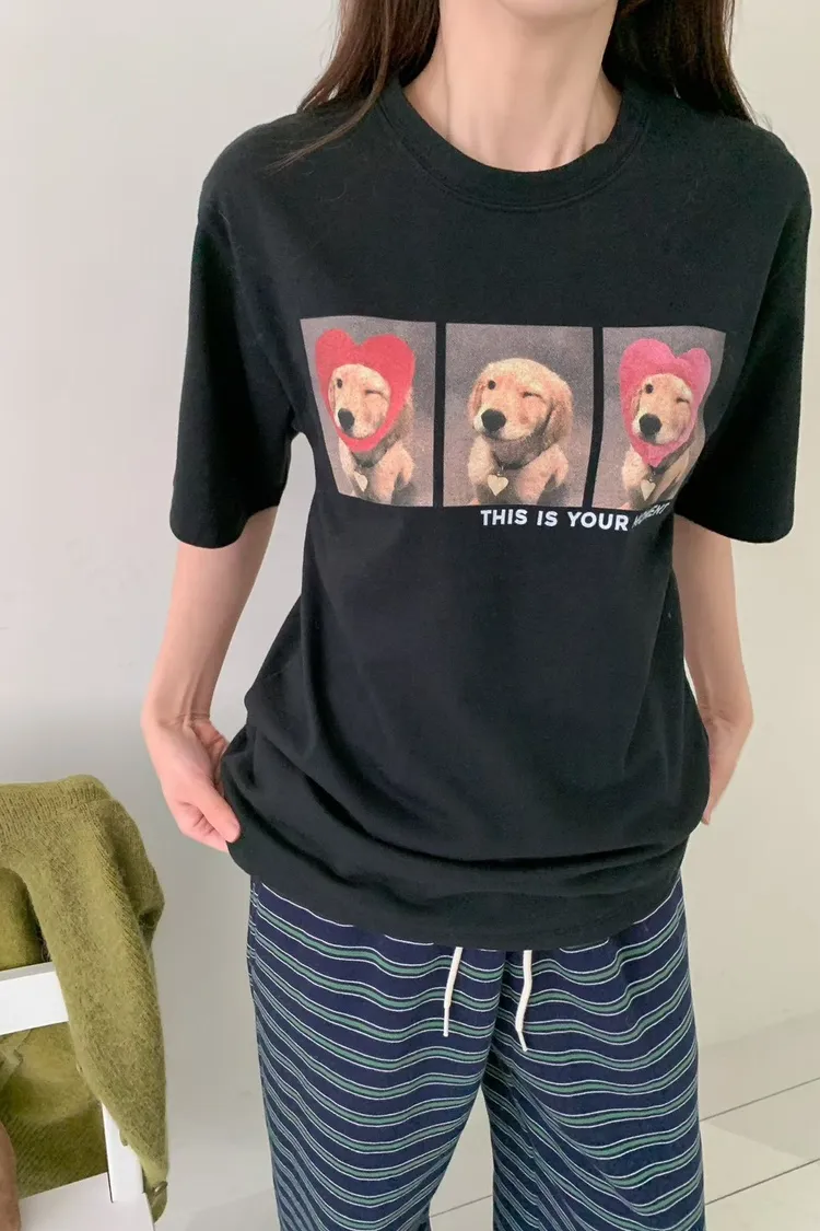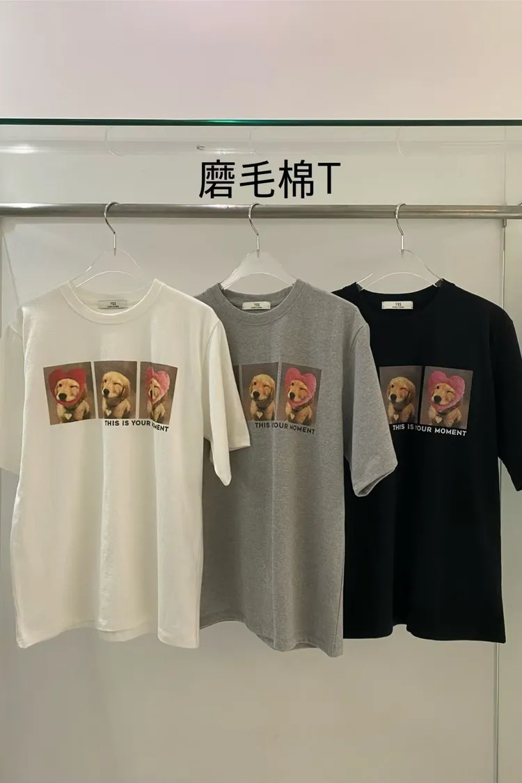 MM231小黃金獵犬帶愛心頭套磨毛短袖TEE